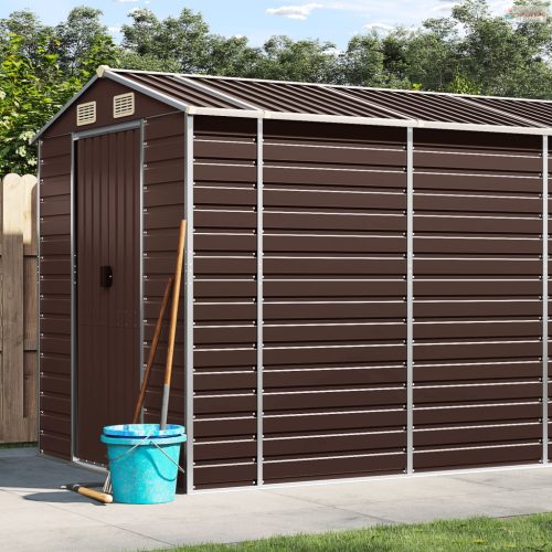 Barna horganyzott acél kerti fészer 191 x 470 x 198 cm