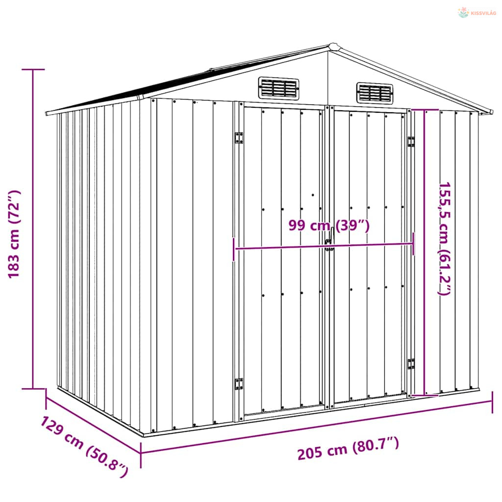 Ez a kerti fészer ideális különféle tárgyak, például szerszámok, kerti bútorok, kerti felszerelések stb. tárolására. A fészer védelmet nyújt a szennyeződés, por, erős szél és a zord időjárás ellen.