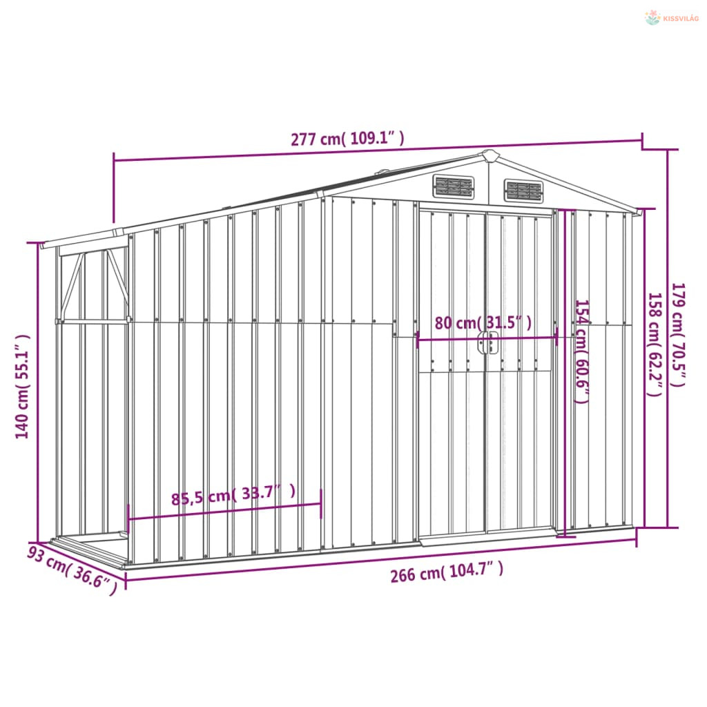 Barna horganyzott acél kerti fészer 277x93x179 cm