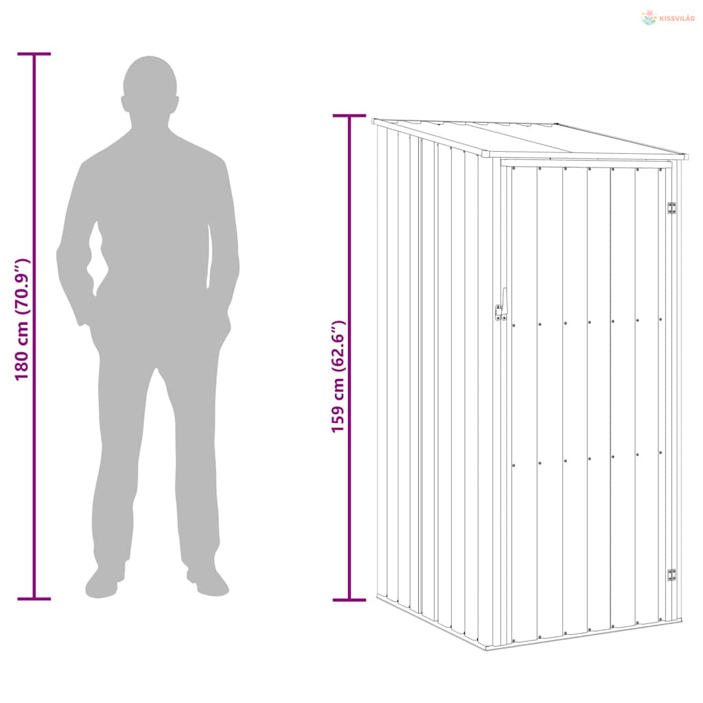 Mivel horganyzott acélból készült, ez a tárolófészer minimális karbantartást igényel és nagyon tartós. Az esővíz a lejtős kialakításnak köszönhetően automatikusan elfolyik a tetőről.