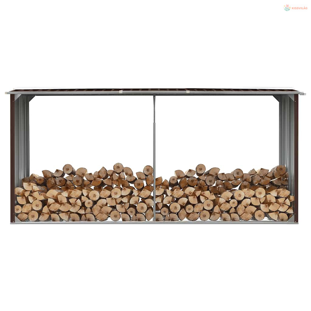 Barna horganyzott acél kerti tűzifatároló 330 x 92 x 153 cm