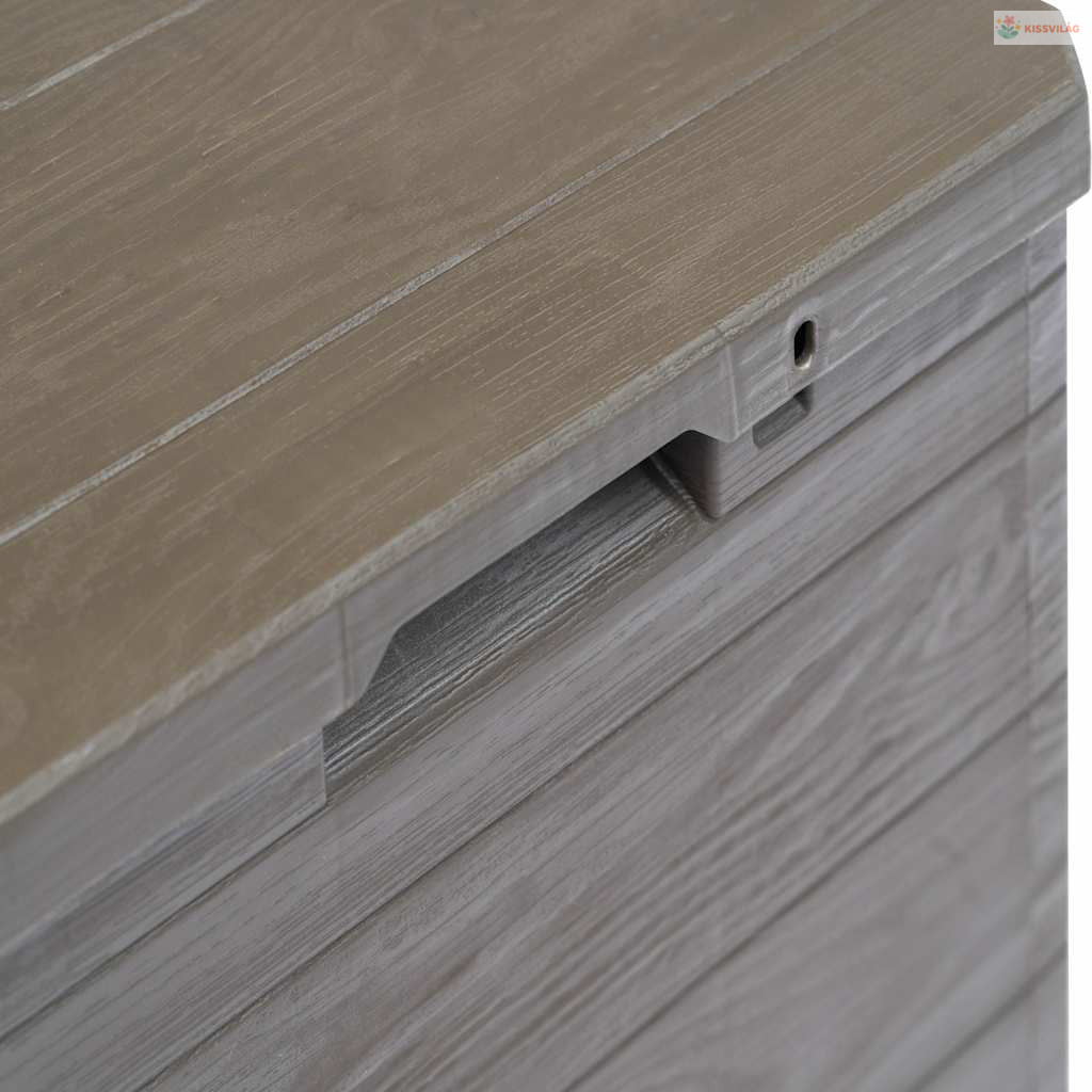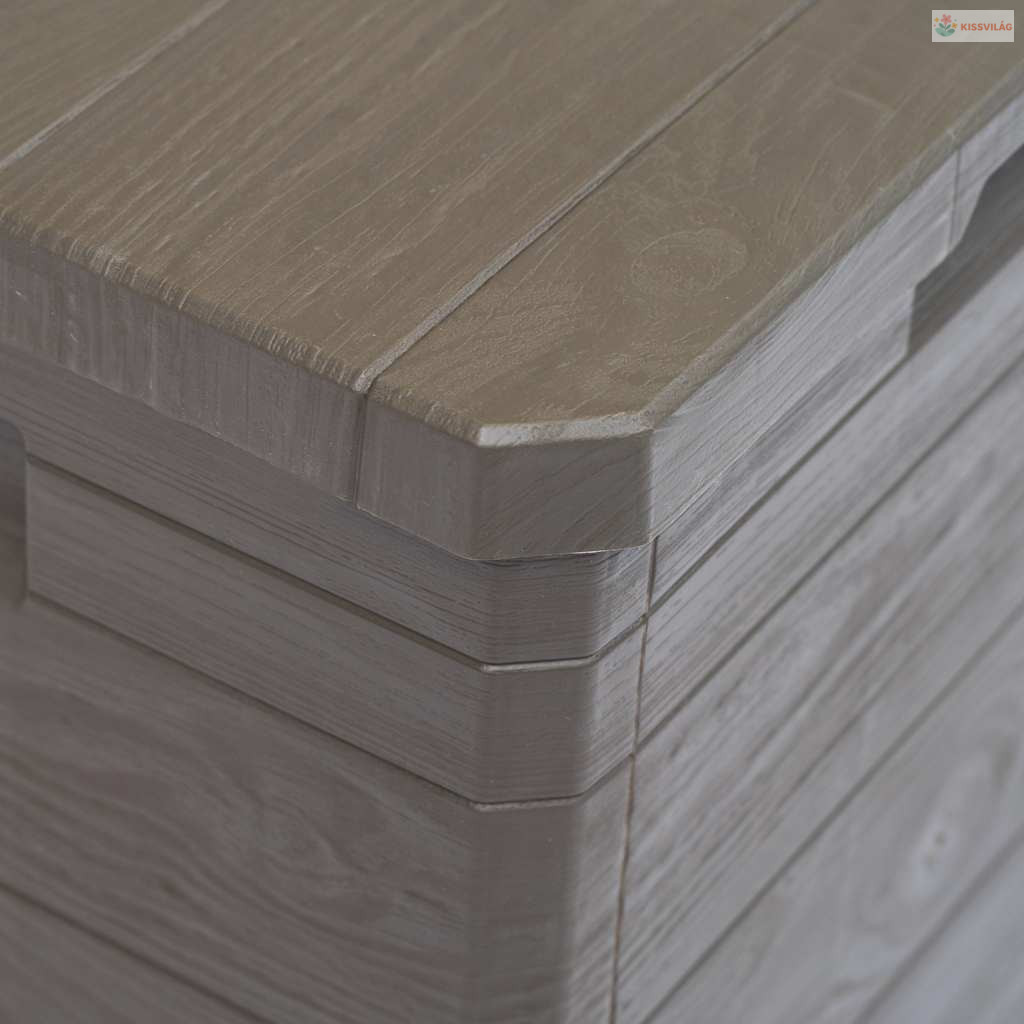 • Stílusos dizájn: A fa textúrájú kialakítása miatt ez a kerti tárolóláda időtlen megjelenéssel bír, bármilyen dekorációba tökéletesen illeszkedve.