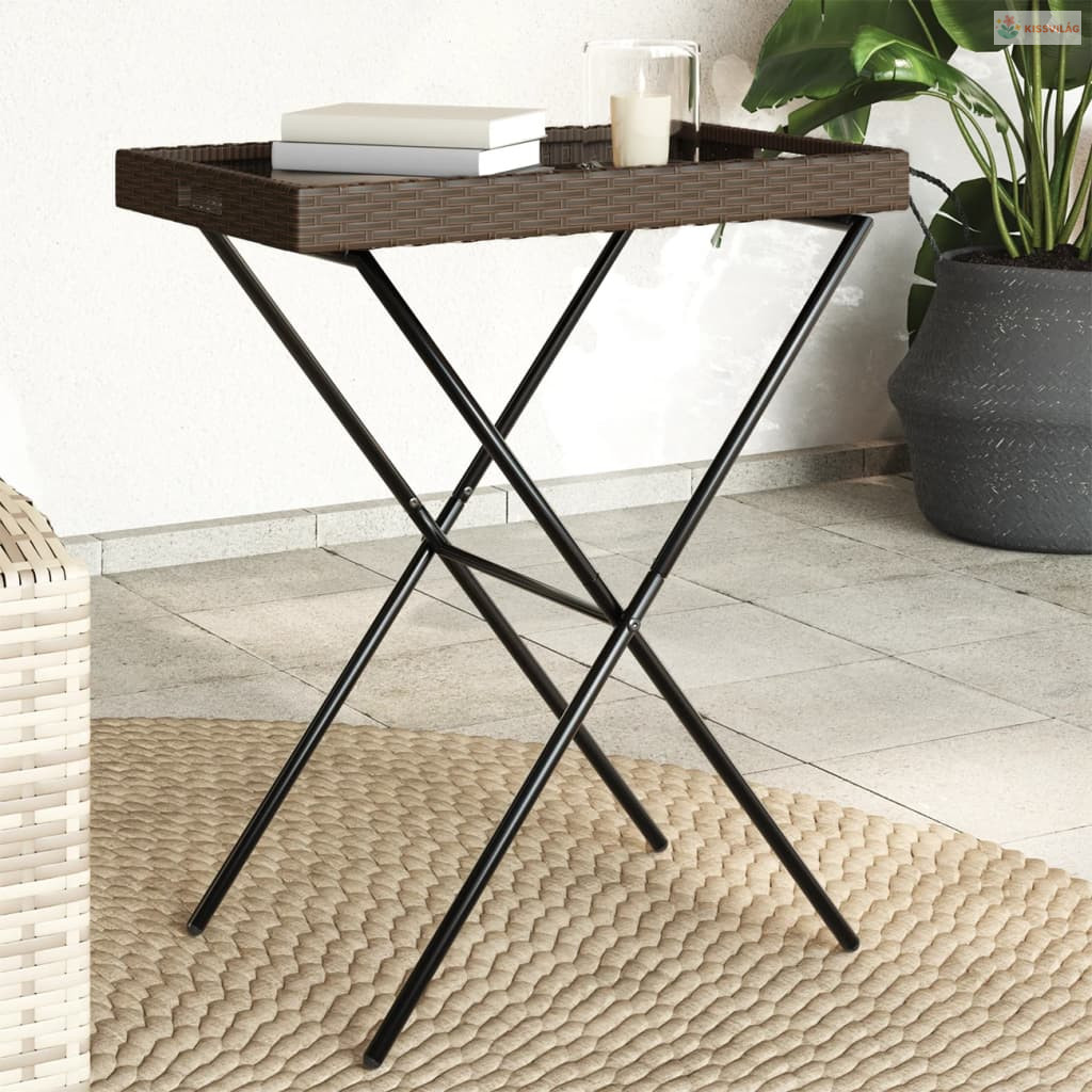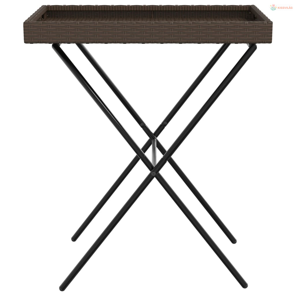 Barna összecsukható polyrattan tálcaasztal 65 x 40 x 75 cm