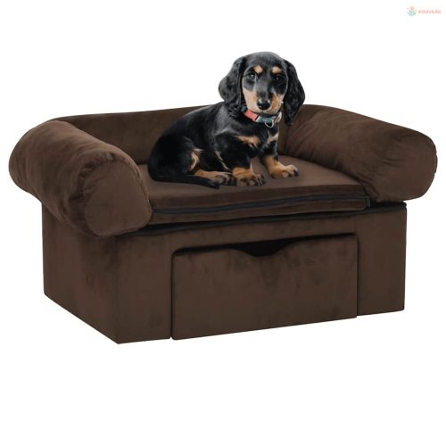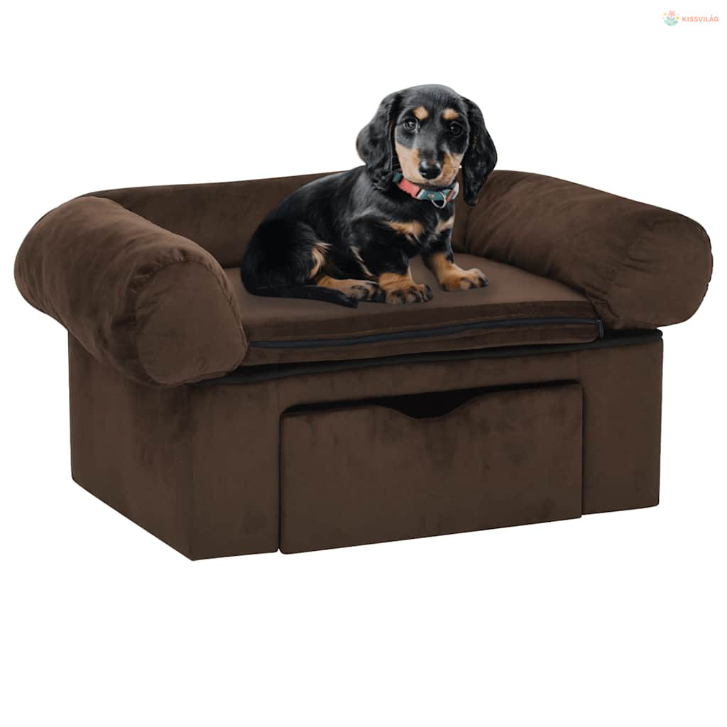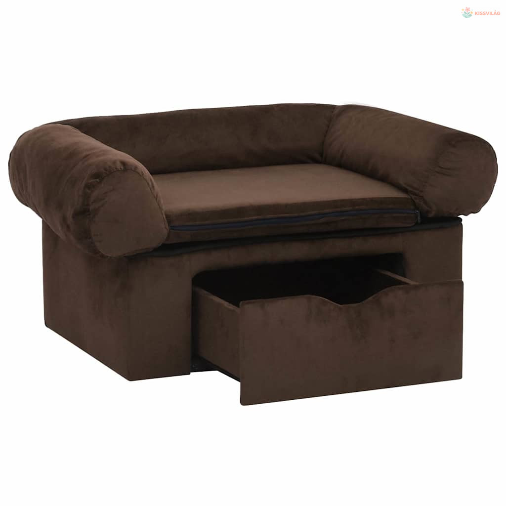 Barna plüss kutyakanapé fiókkal 75 x 50 x 38 cm