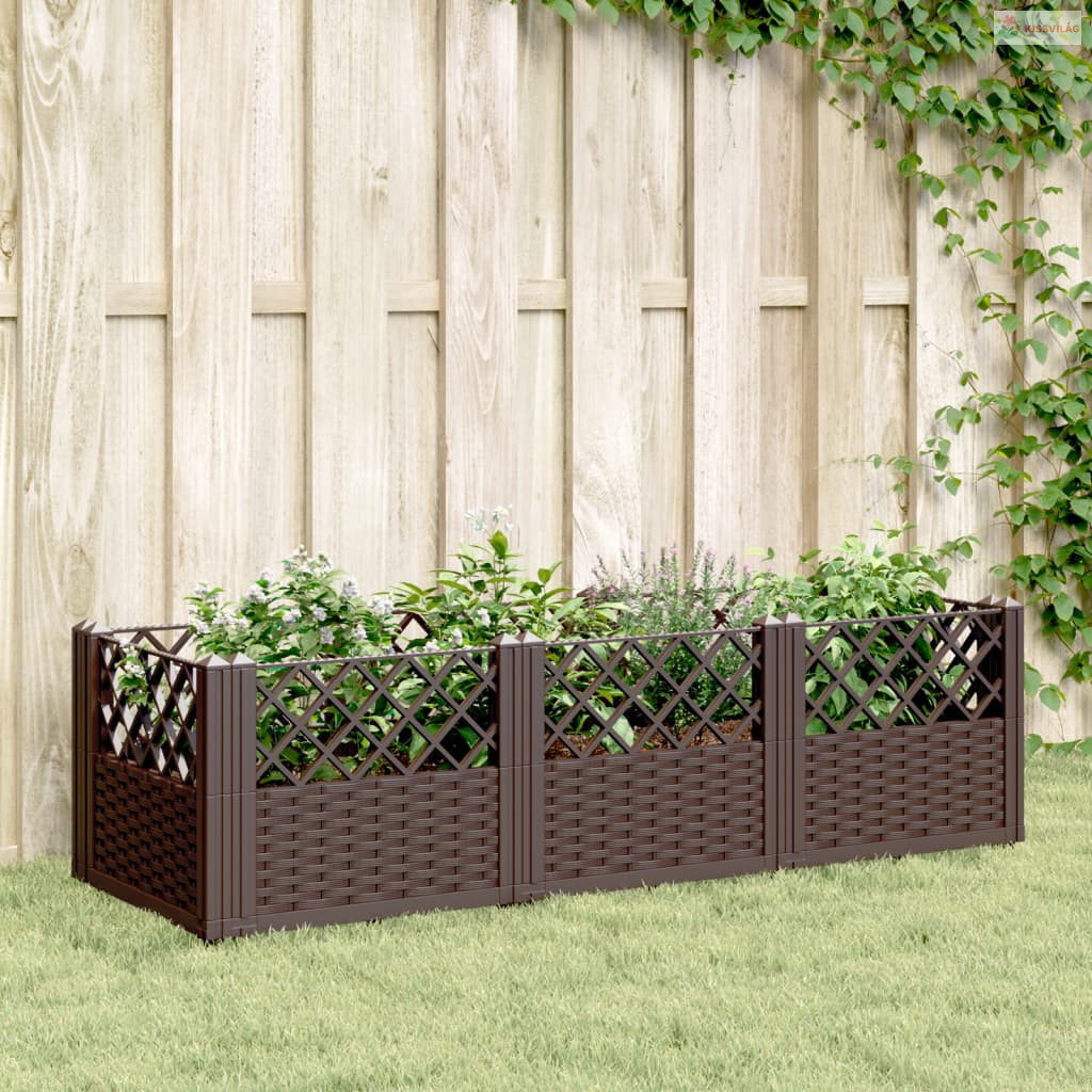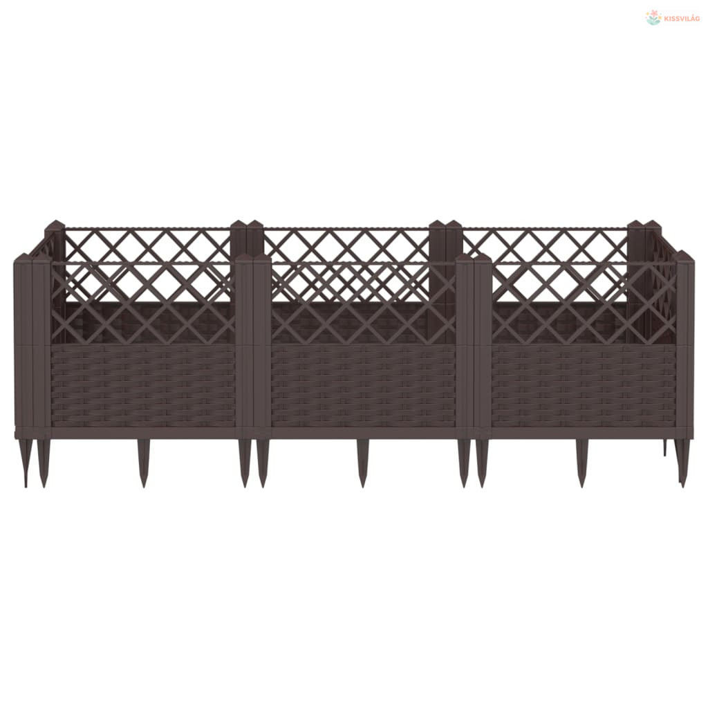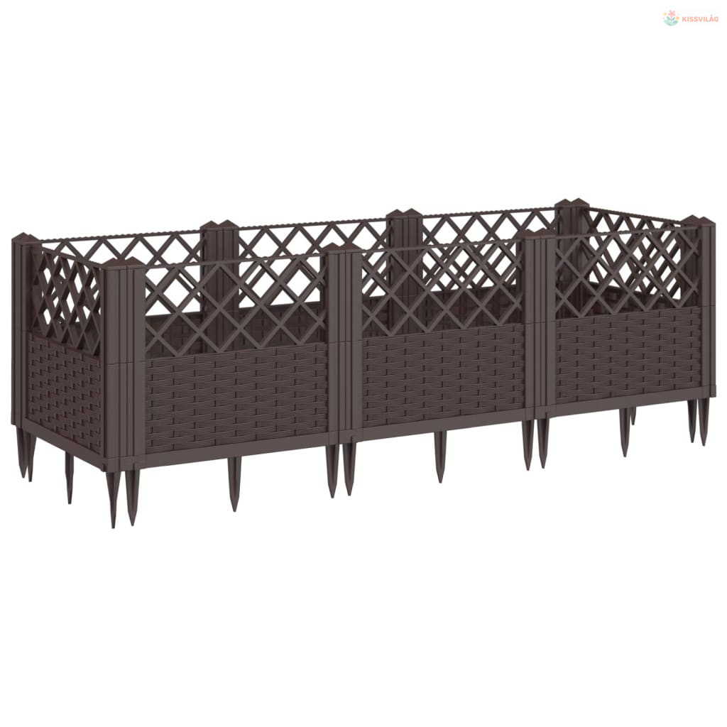 Barna polipropilén kerti virágláda cövekekkel 123,5x43,5x43,5cm