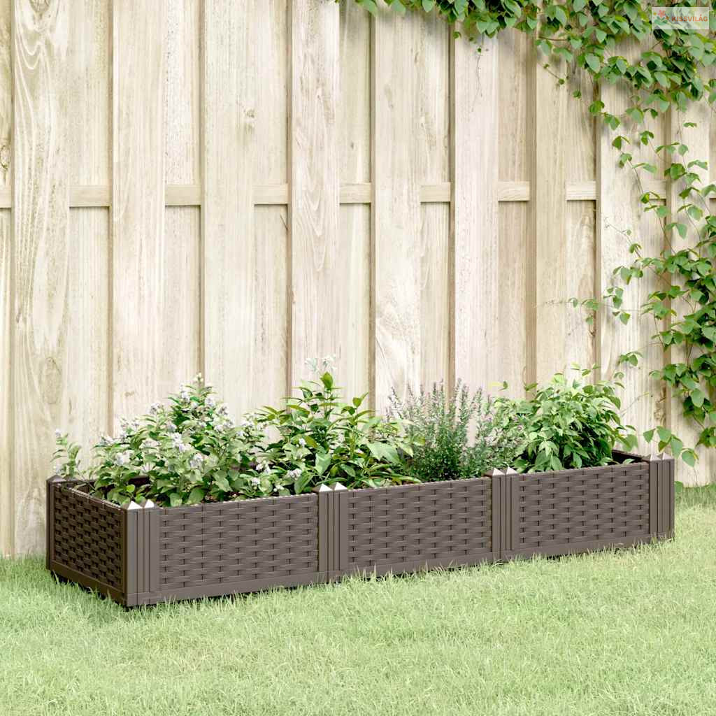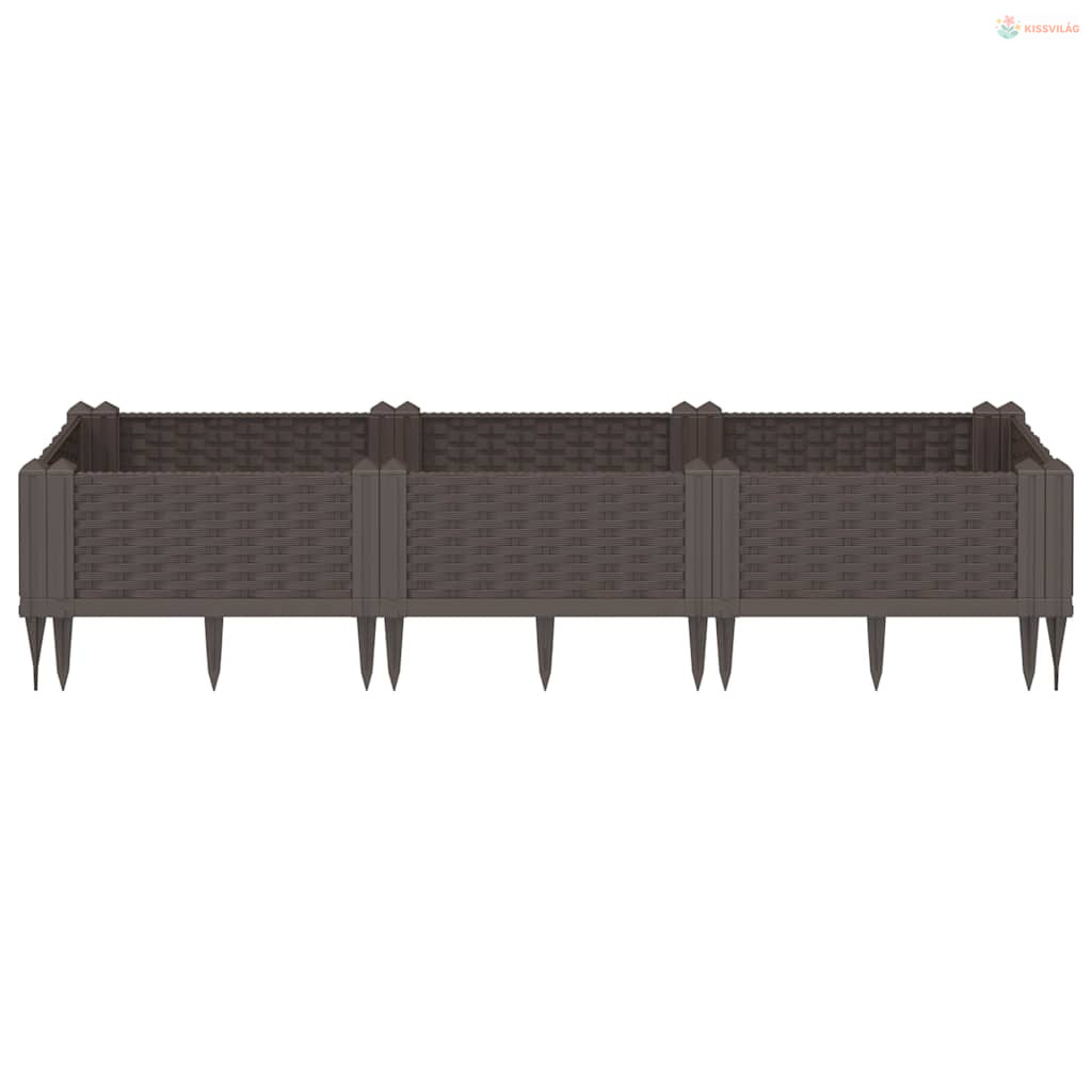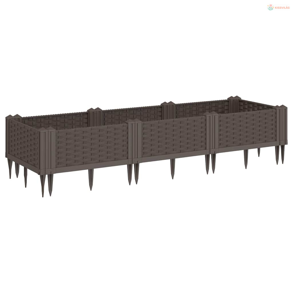 Barna polipropilén kerti virágláda cövekekkel 125x40x28,5 cm
