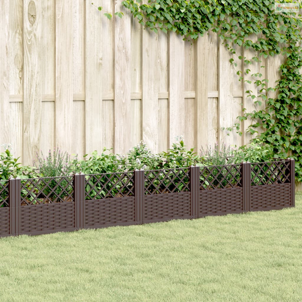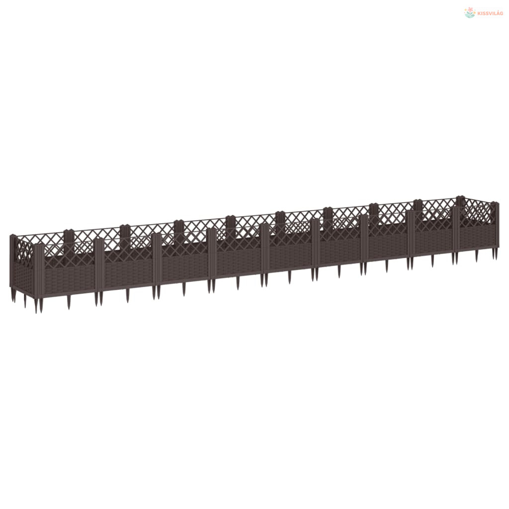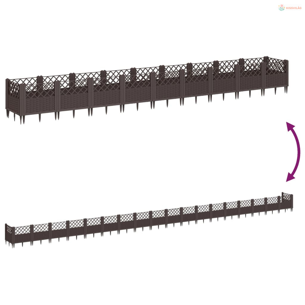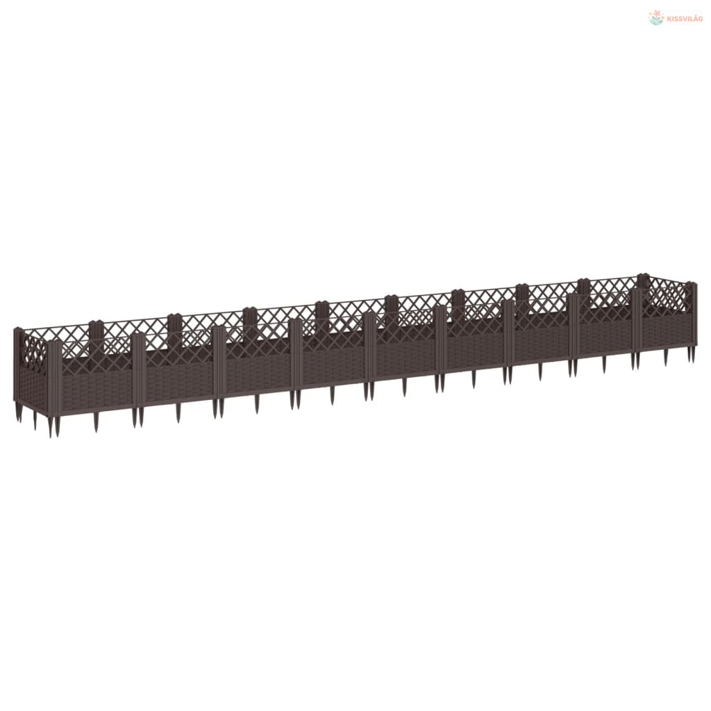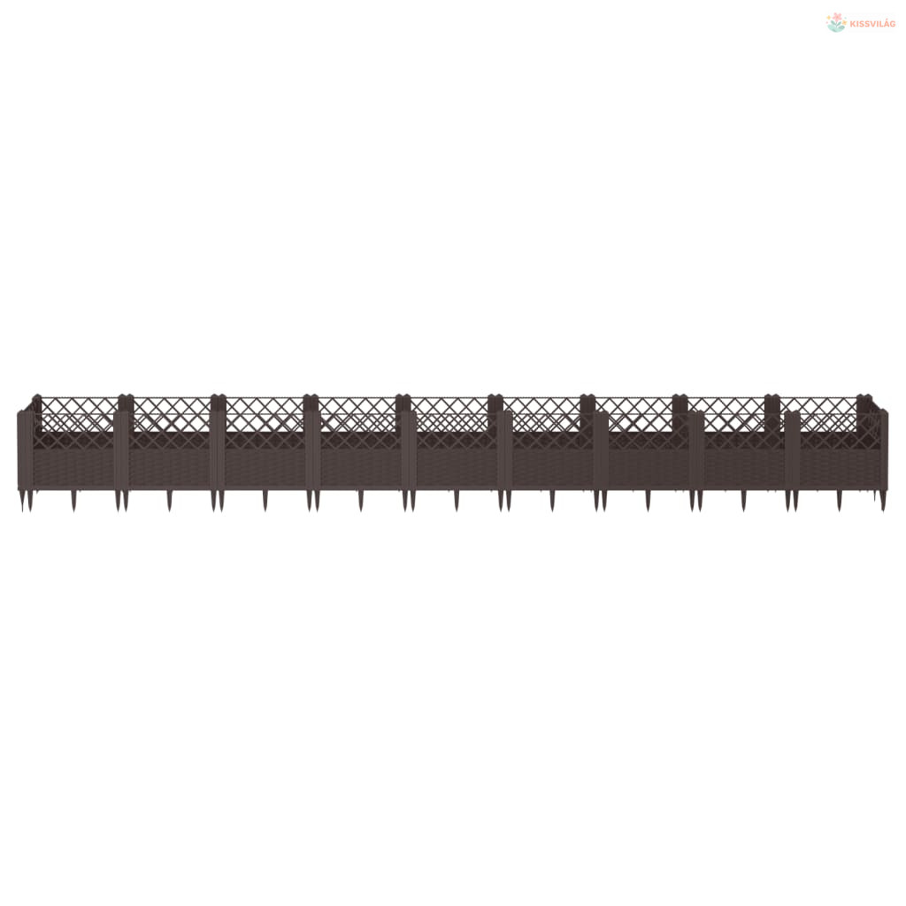 Barna polipropilén kerti virágláda cövekekkel 363,5x43,5x43,5cm