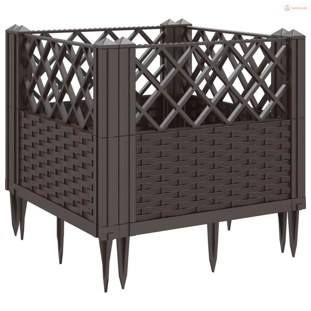 Barna polipropilén kerti virágláda cövekekkel 43,5x43,5x43,5 cm