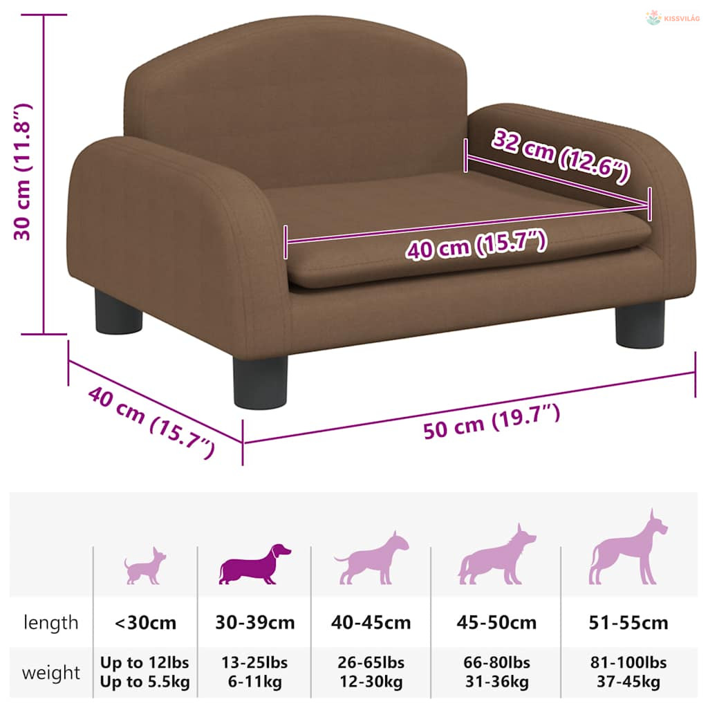Barna szövet kutyaágy 50 x 40 x 30 cm