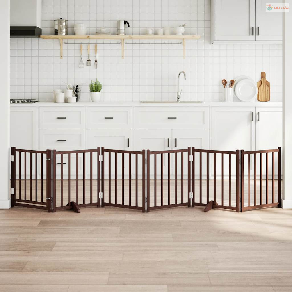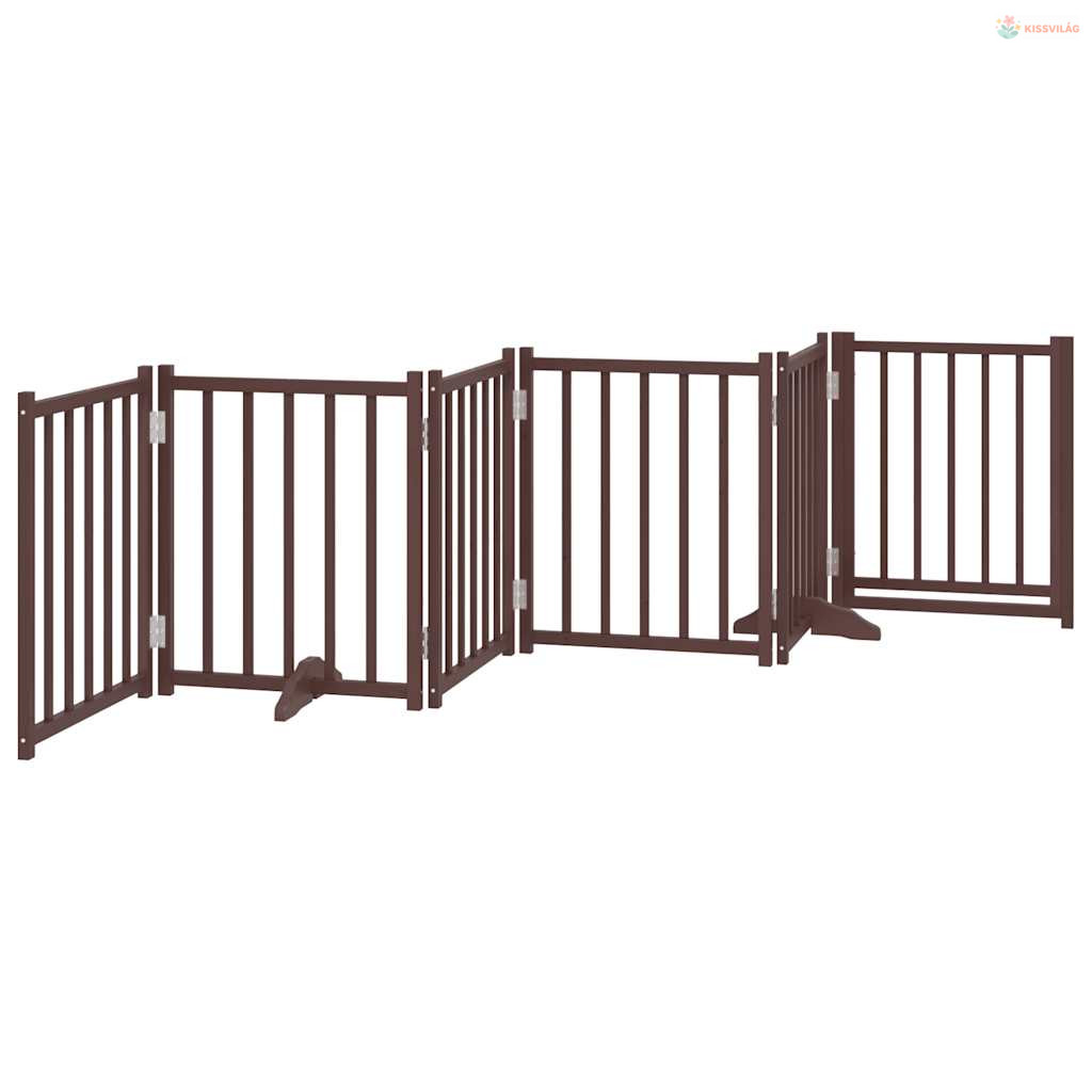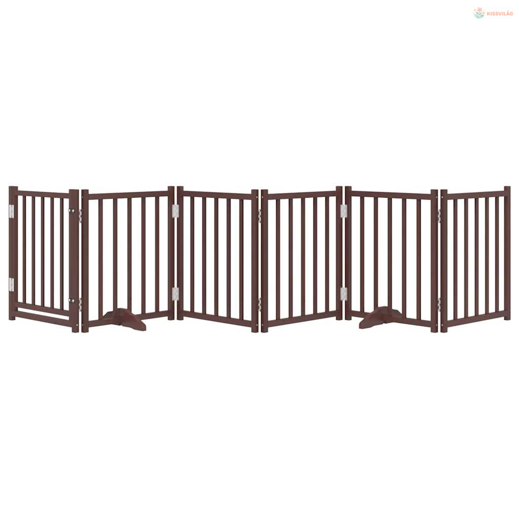 Barna tömör fa 6 paneles összecsukható kutyakapu ajtóval 300 cm