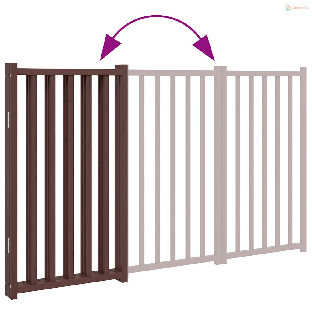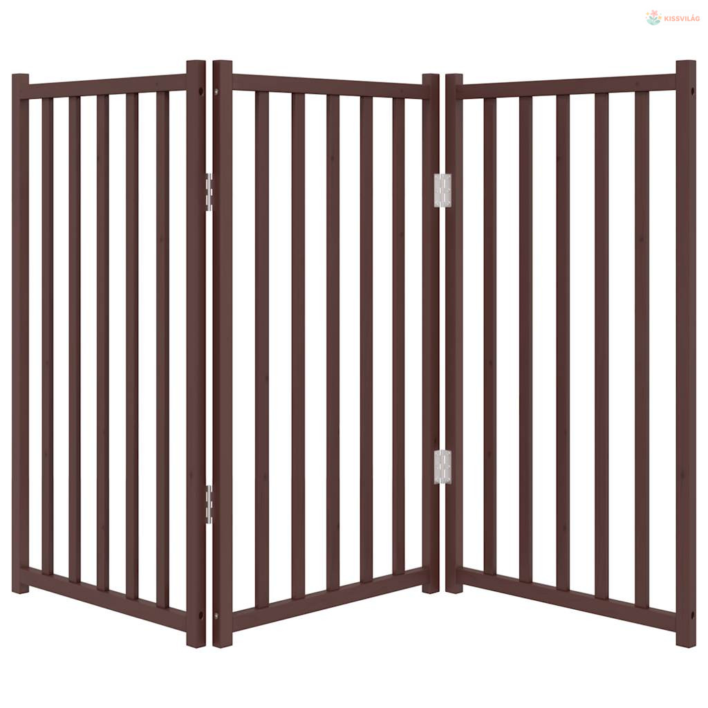 Barna tömör fenyőfa 3 paneles összecsukható kutyakapu 150 cm