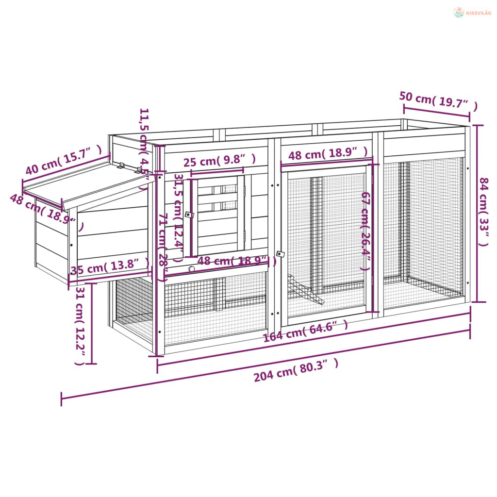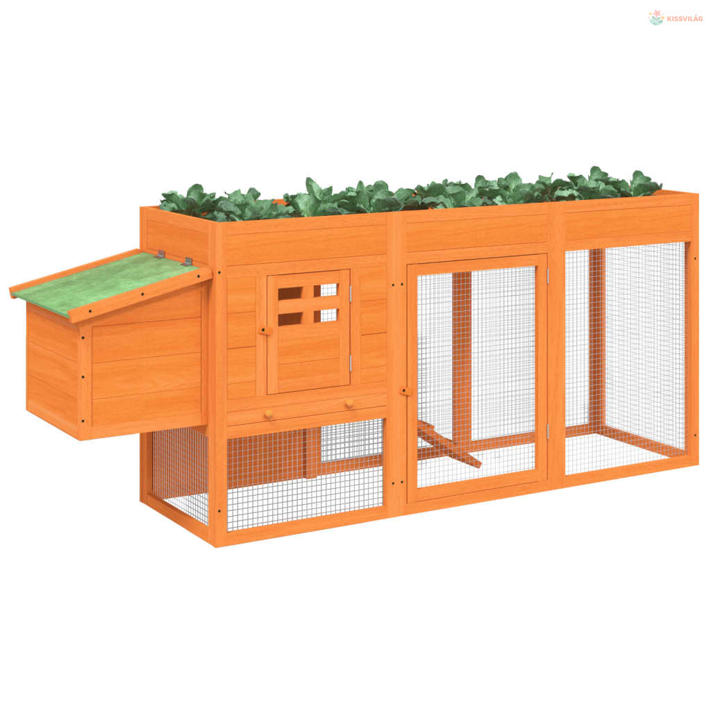 Barna tömör fenyőfa tyúkól 204 x 50 x 84 cm