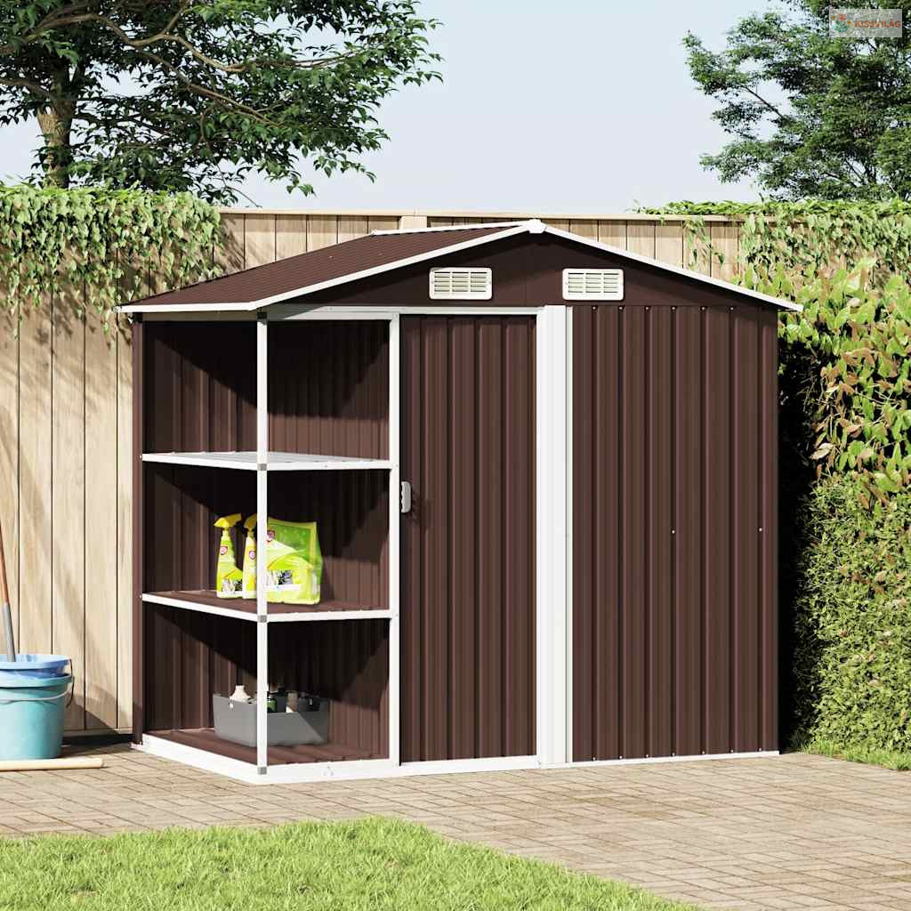 Barna vas kerti fészer állvánnyal 205 x 130 x 183 cm