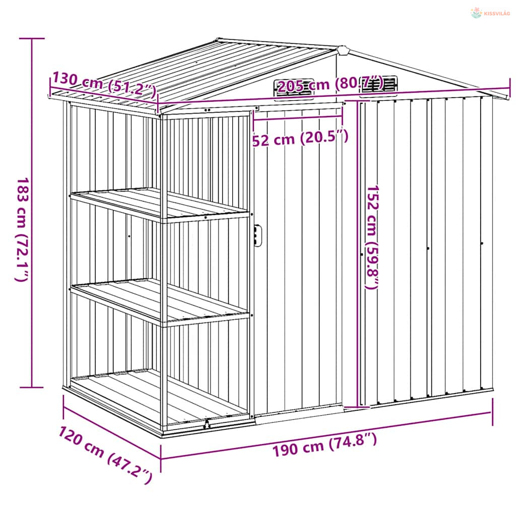 Ez a kerti tároló polccal ideális különféle szerszámok, kerti bútorok és kerti felszerelések tárolására.