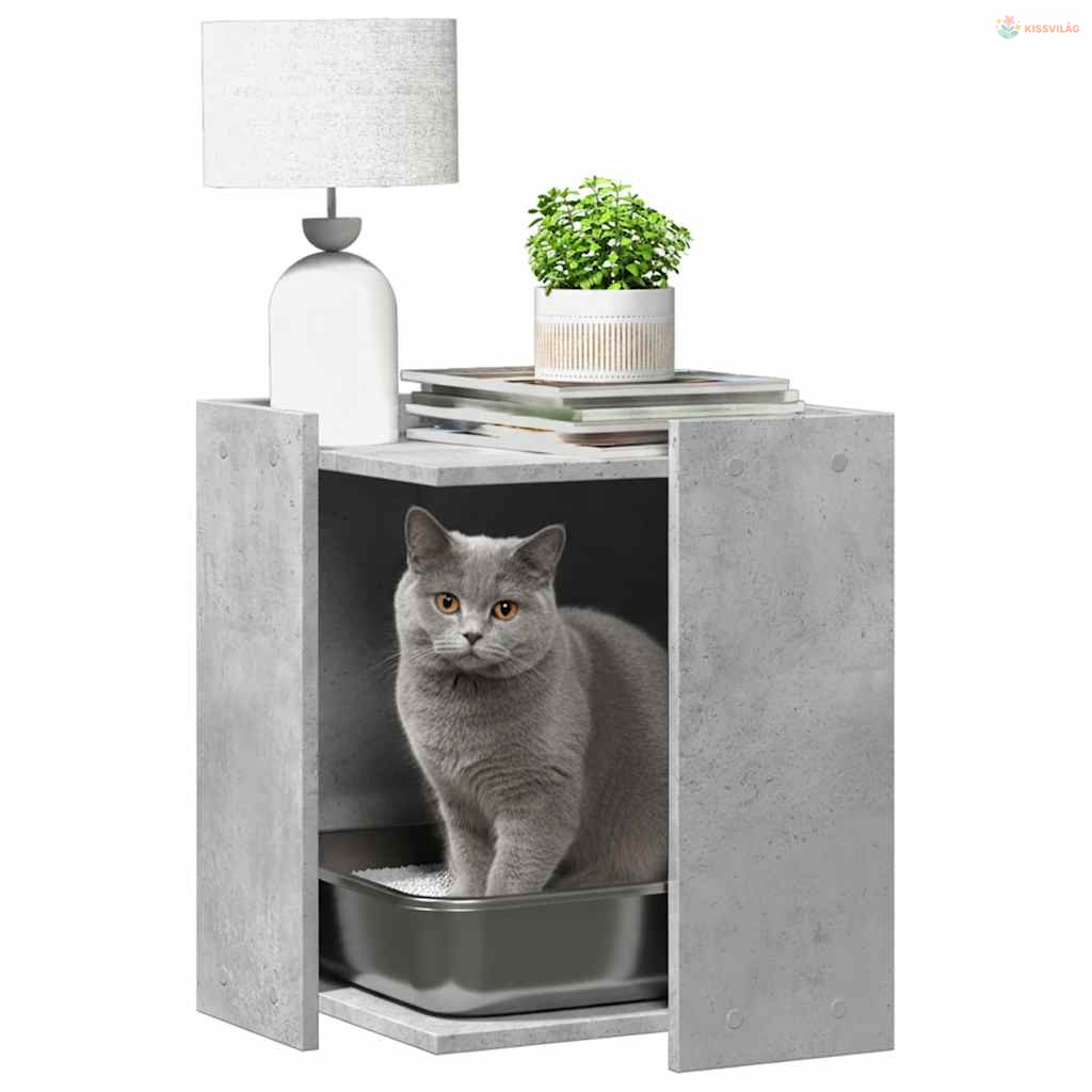 Betonszürke szerelt fa macskaalomdoboz 42 x 42 x 51 cm