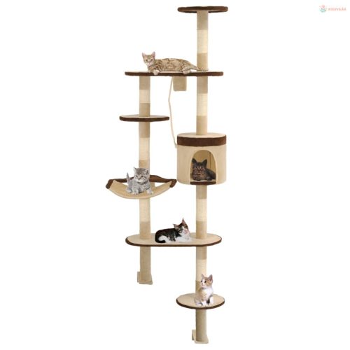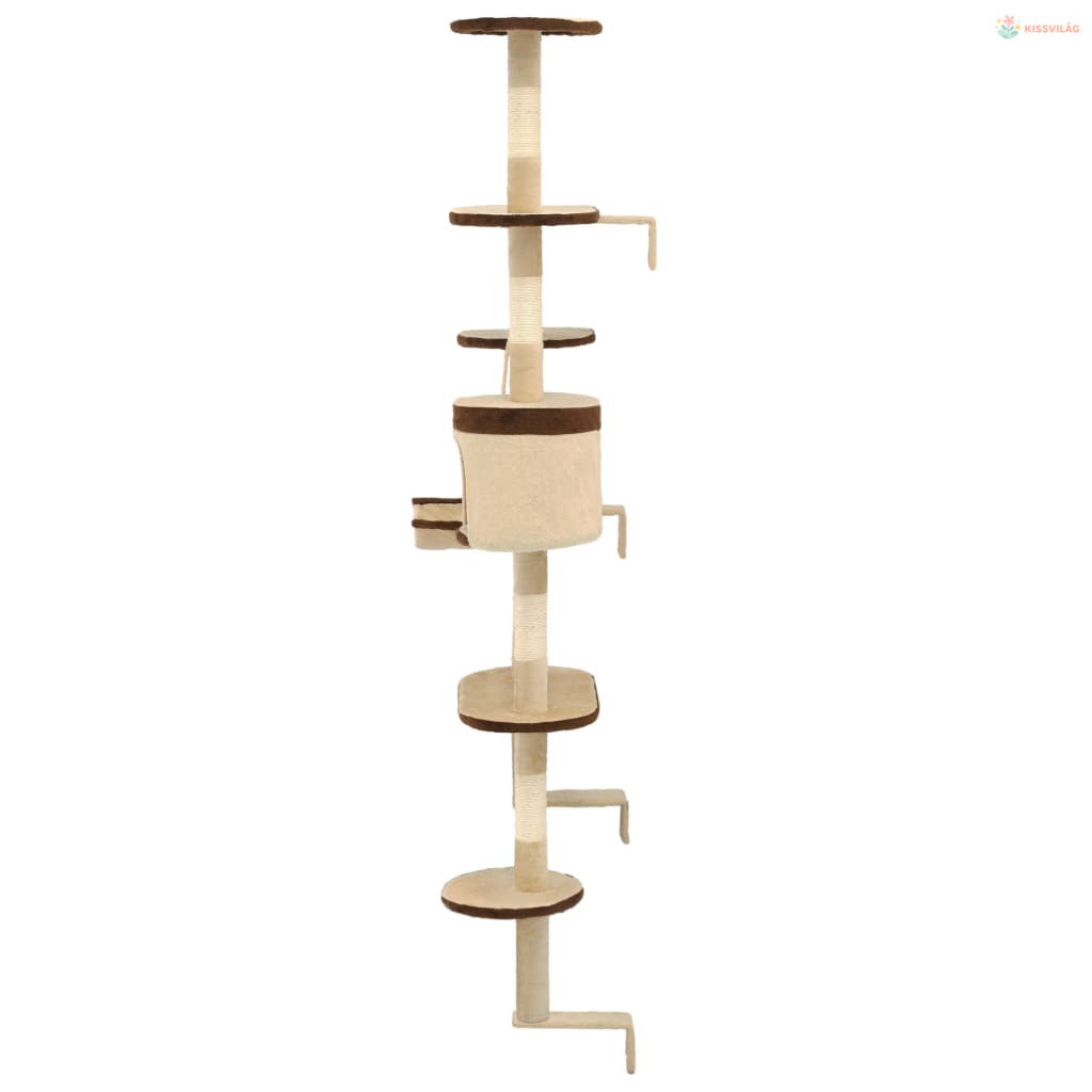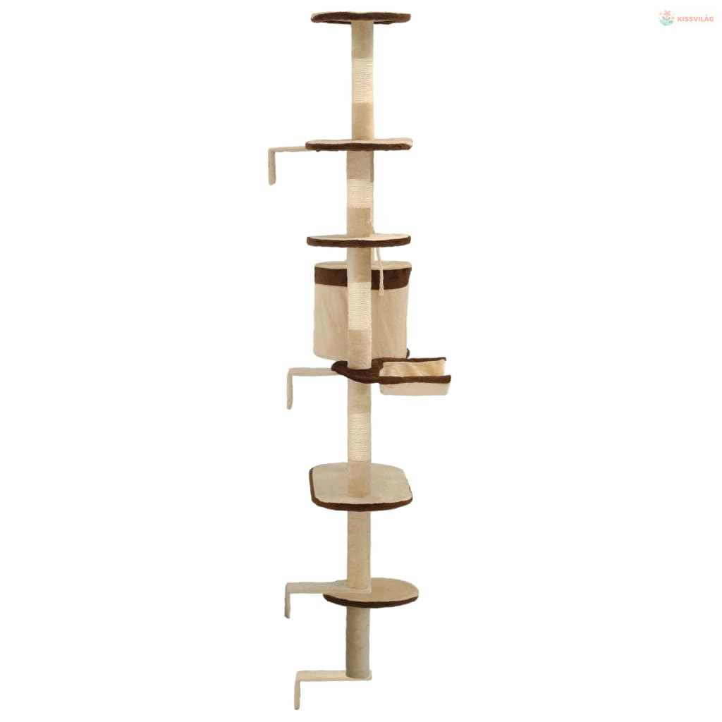 Bézs/barna fali macskabútor szizál kaparófákkal 194 cm