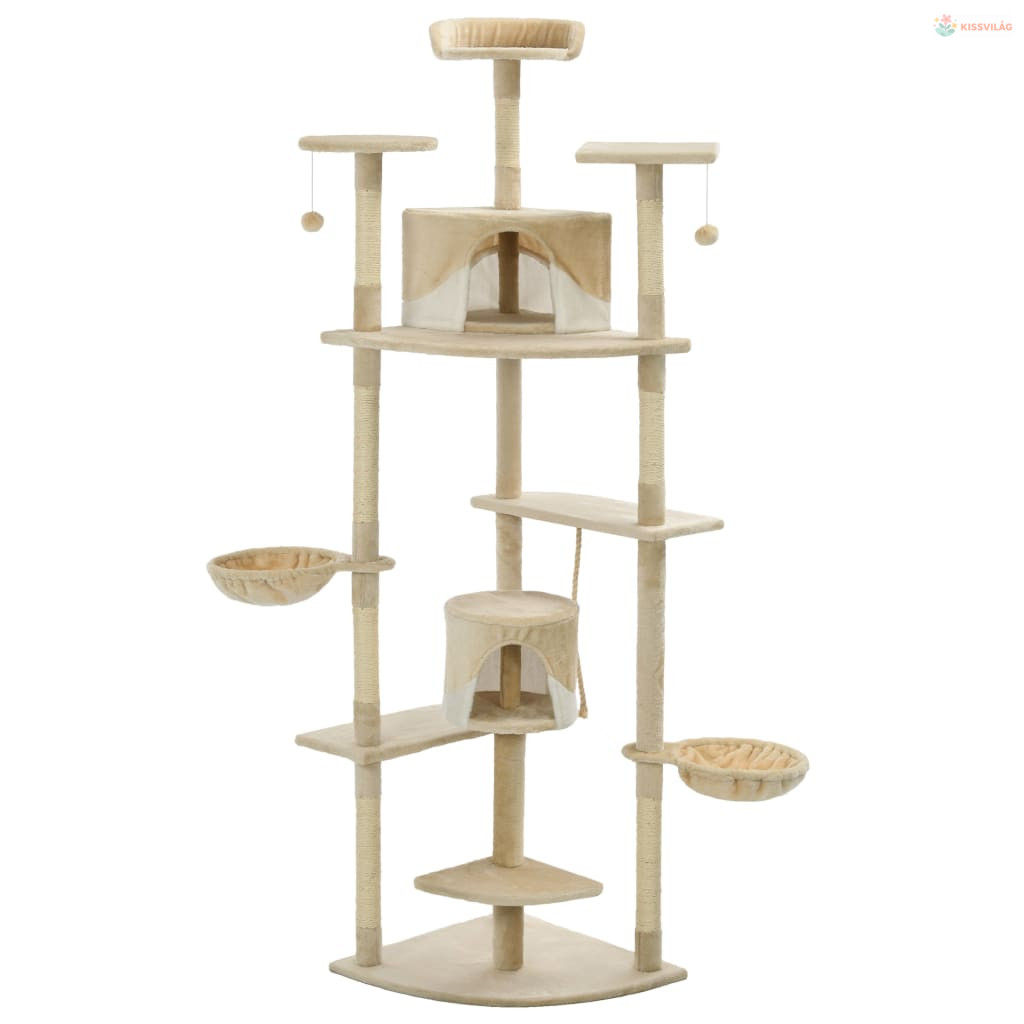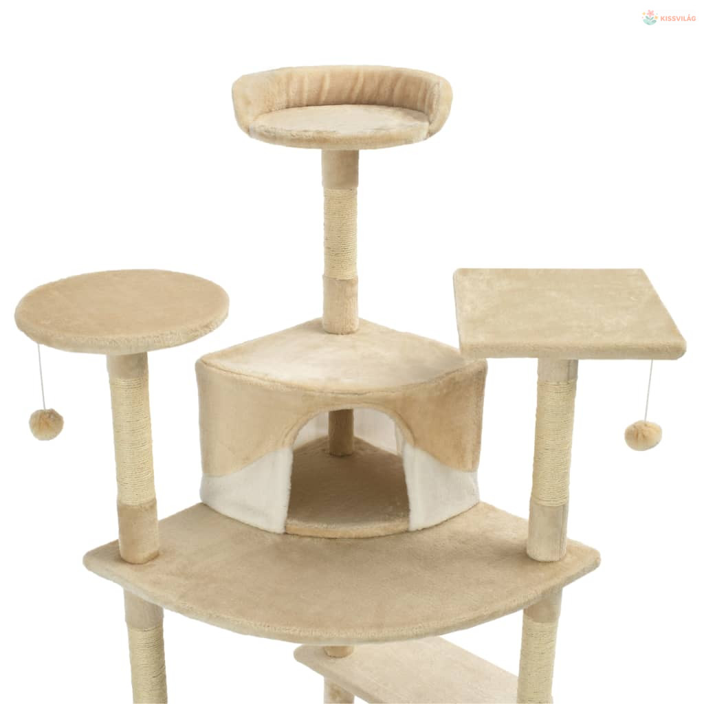 Bézs/fehér macskabútor szizál kaparófákkal 203 cm