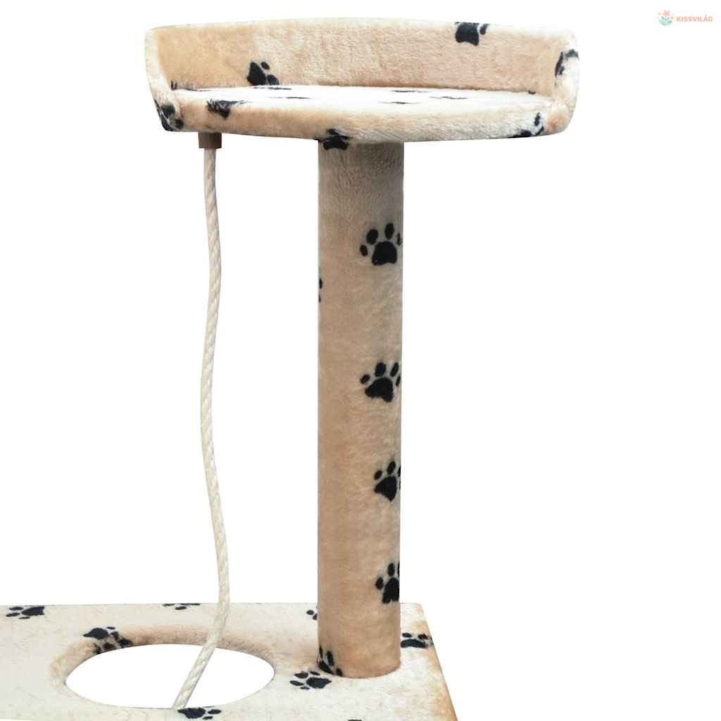 Bézs macskabútor mancsnyomokkal és szizál kaparófákkal 150 cm