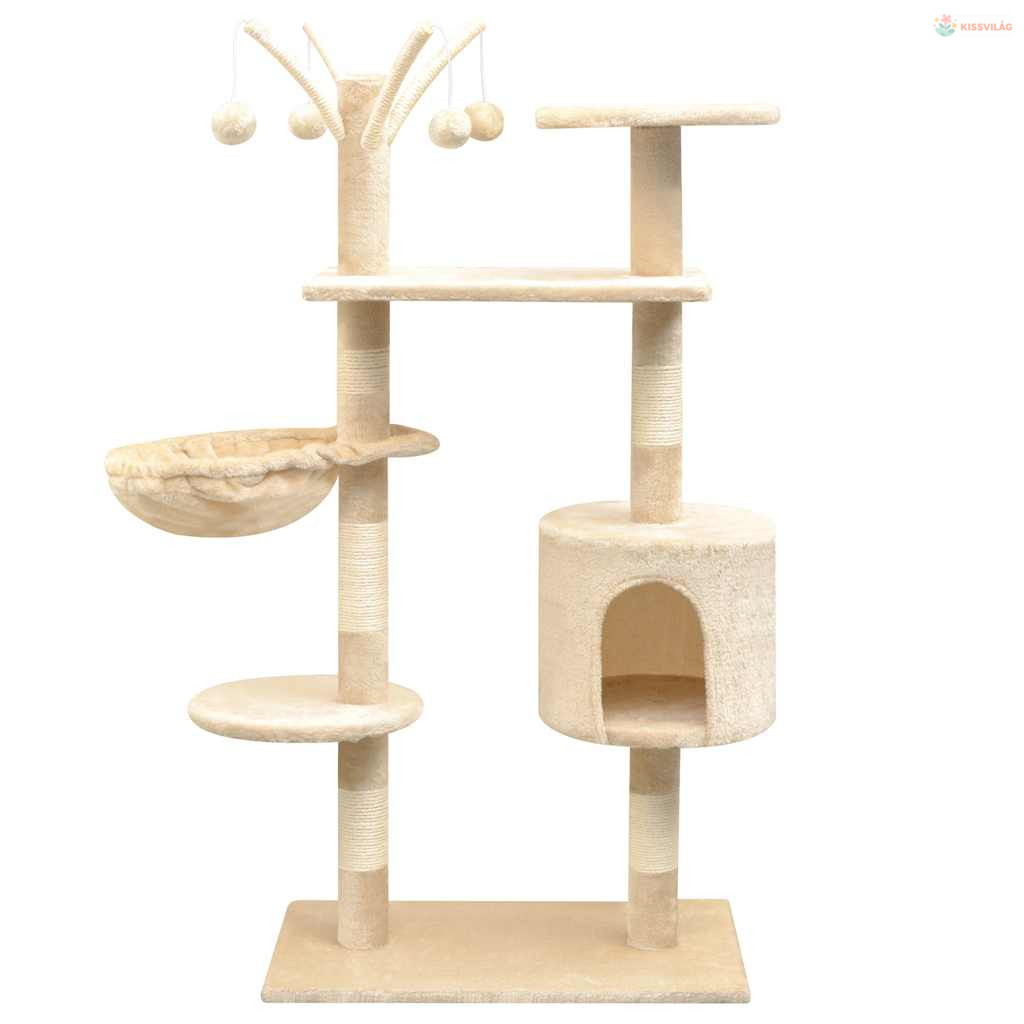Bézs macskabútor szizál kaparófákkal 125 cm