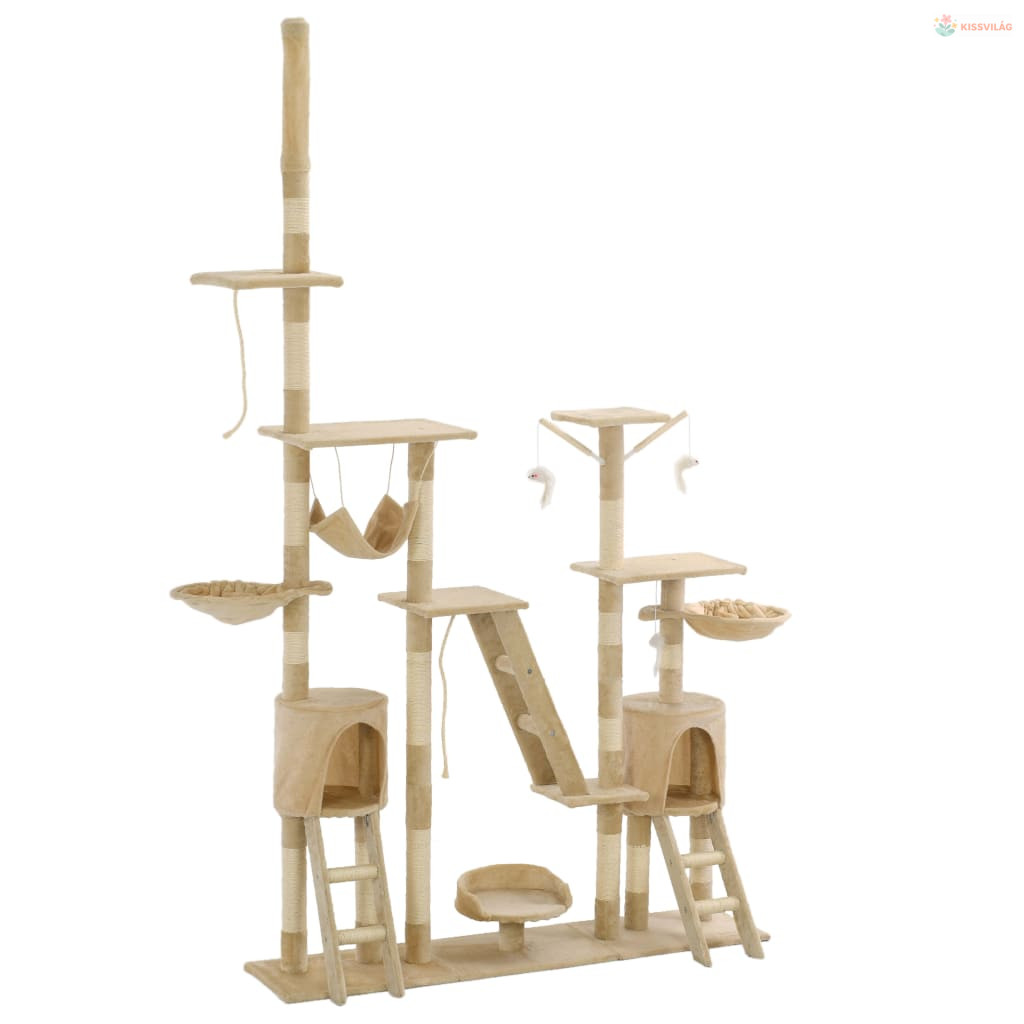 Bézs macskabútor szizál kaparófákkal 230-250 cm