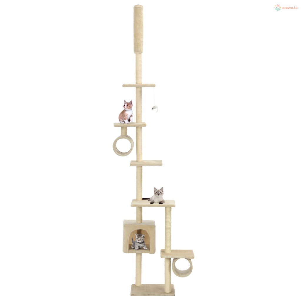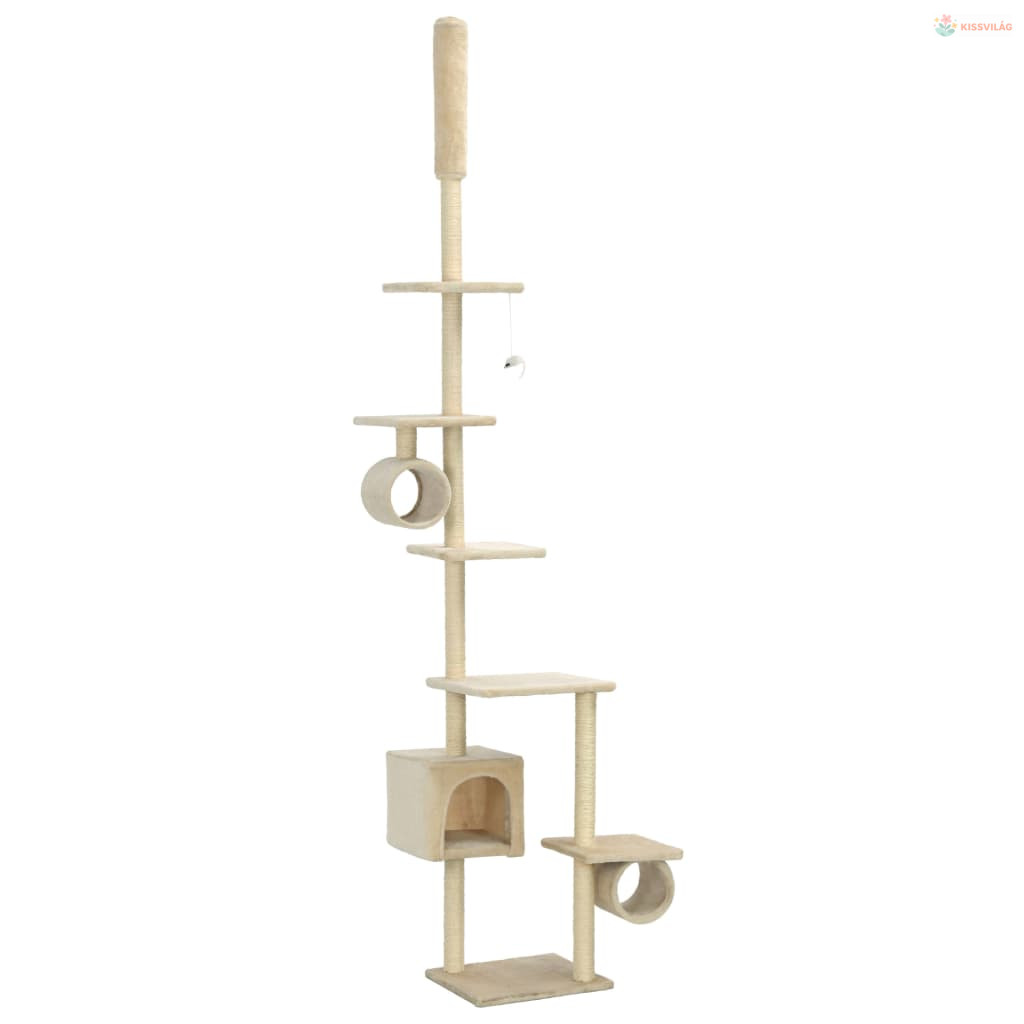 Bézs macskabútor szizál kaparófákkal 260 cm