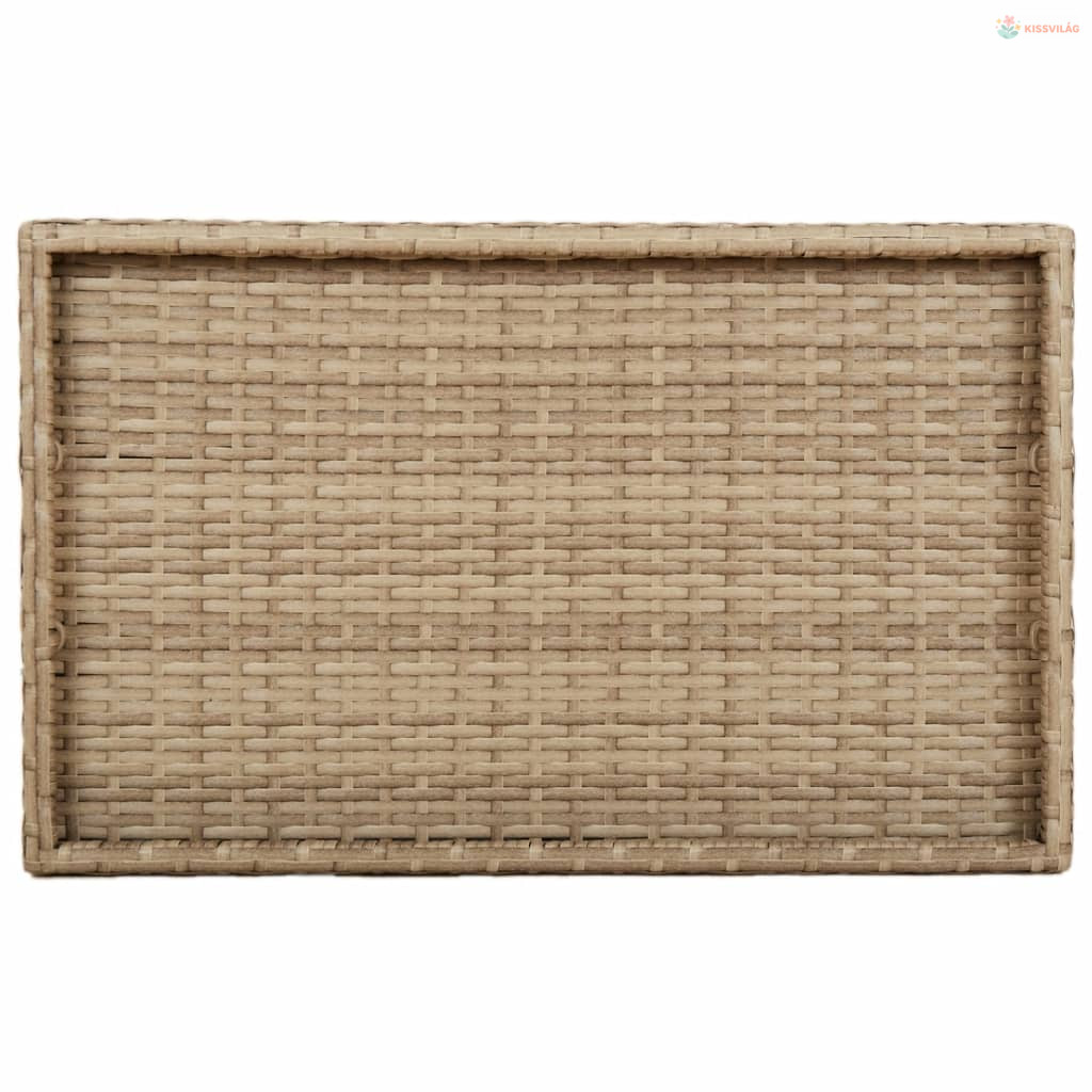 Bézs összecsukható polyrattan tálcaasztal 65 x 40 x 75 cm