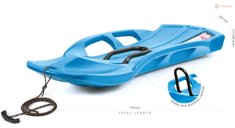 Szerezzen örömet gyermekeinek a világoskék SNOW TRAIN CONTROL szánkóval a Prosperplasttól. Élvezzék a téli szórakozást teljes gőzzel! A szánkó fém fékkel van felszerelve, az egyszerűbb használat érdekében pedig az elején egy praktikus fogantyús húzókötél található. Az oldalakon kapaszkodók biztosítják a nagyobb biztonságot szánkózás közben. Nem kell félnie a hidegtől – a szánkó akár -18 °C-ig hőálló.