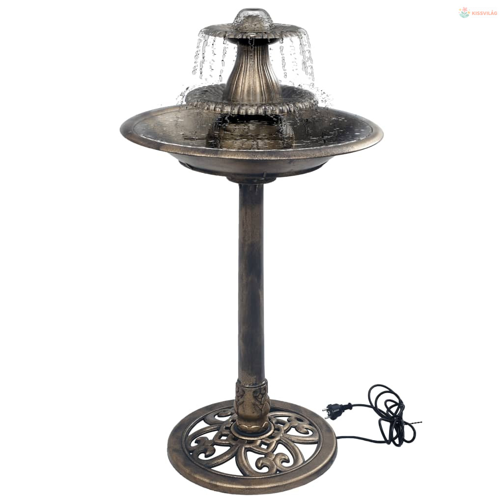 Bronzszínű műanyag madárfürdető szökőkúttal 50 x 91 cm