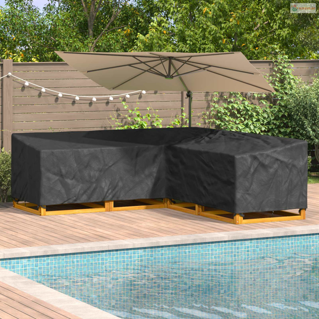 Ez a modern L-alakú bútorvédő kifejezetten kültéri bútorok védelmére készült, miközben a kertedet vagy teraszodat letisztult dizájnjával dobja fel. A funkcionalitásra tervezve megbízható védelmet nyújt az elemek ellen, biztosítva, hogy a kültéri bútoraid sokáig szép állapotban maradjanak. Tartós Oxford szövetből és PU bevonattal készült, így hatékonyan véd a víz és a napi kültéri viszontagságok ellen.