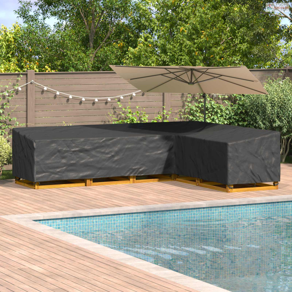 Ez a modern L-alakú bútorvédő kifejezetten kültéri bútorok védelmére készült, miközben a kertedet vagy teraszodat letisztult dizájnjával dobja fel. A funkcionalitásra tervezve megbízható védelmet nyújt az elemek ellen, biztosítva, hogy a kültéri bútoraid sokáig szép állapotban maradjanak. Tartós Oxford szövetből és PU bevonattal készült, így hatékonyan véd a víz és a napi kültéri viszontagságok ellen.