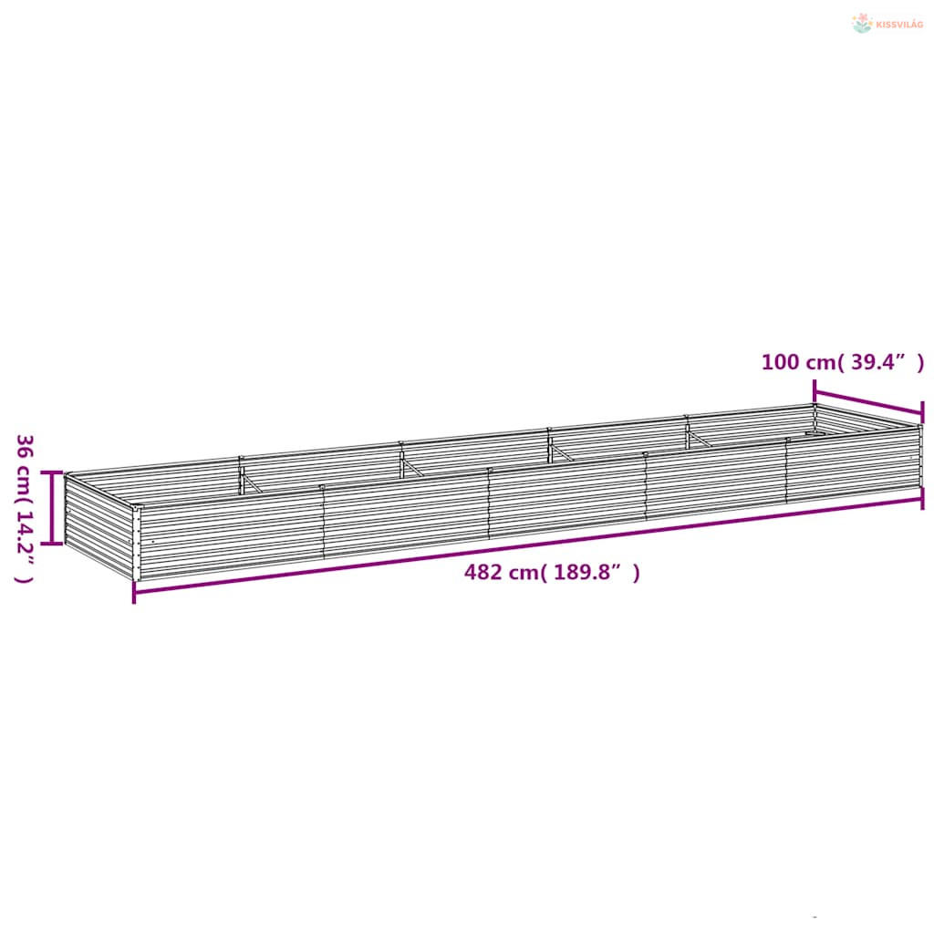 Corten acél kerti magaságyás 482x100x36 cm