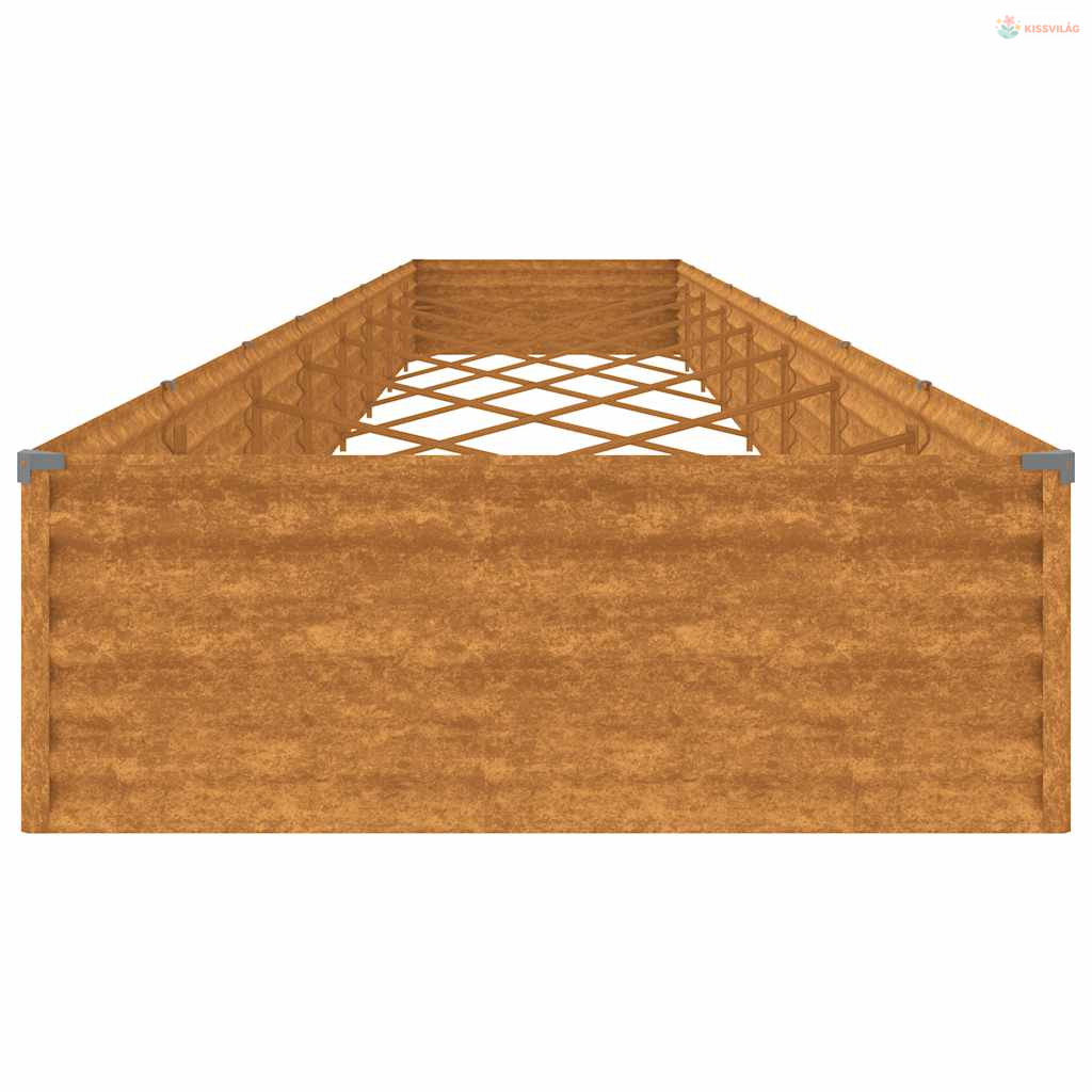 • Tartós anyag: corten acél, más néven időjárásálló acél. Ez természeténél fogva korróziógátló hatású. Az első légköri hatásnak kitéve rozsdás védőréteget hoz létre a korrózió ellen. Így nem kell festeni. Ezáltal megtakaríthatja a karbantartási és javítási költségeket. A corten acél jellegzetes barna színe minden bizonnyal szemet gyönyörködtető lesz. Végül pedig, az időjárásálló acél rendkívül tartós, és kiállja az idő próbáját.