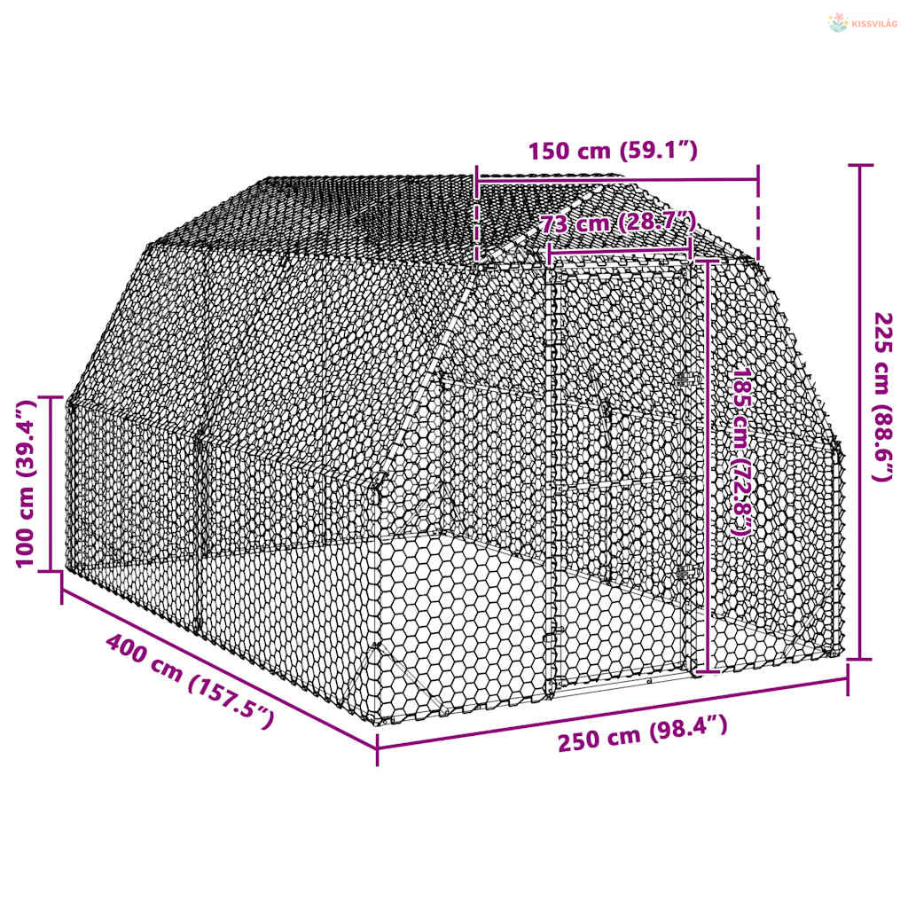 Csirkefuttató 2,5x4x2,25 m horganyzott acél
