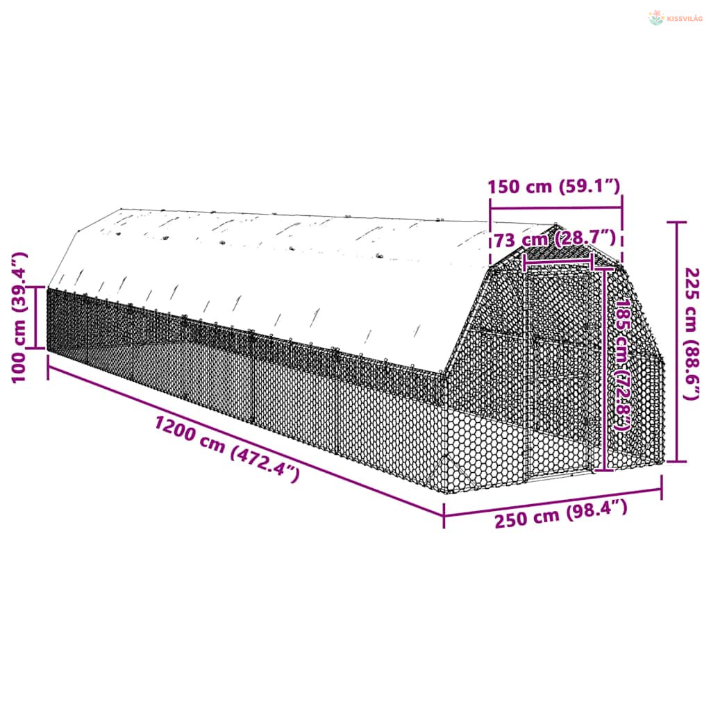 Csirkekifutó tetővel 2,5x12x2,25 m horganyzott acél