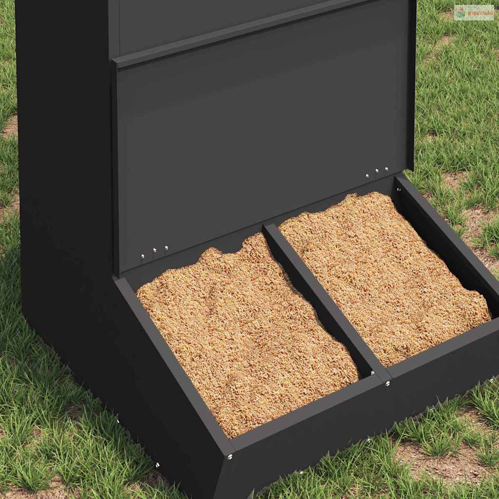 • Masszív acél test Rendkívül tartós, így ellenáll a nehéz kültéri körülményeknek, az acél szerkezet biztosítja az állatok megbízható etetési forrását, még a legnagyobb kíváncsiságuk mellett is.