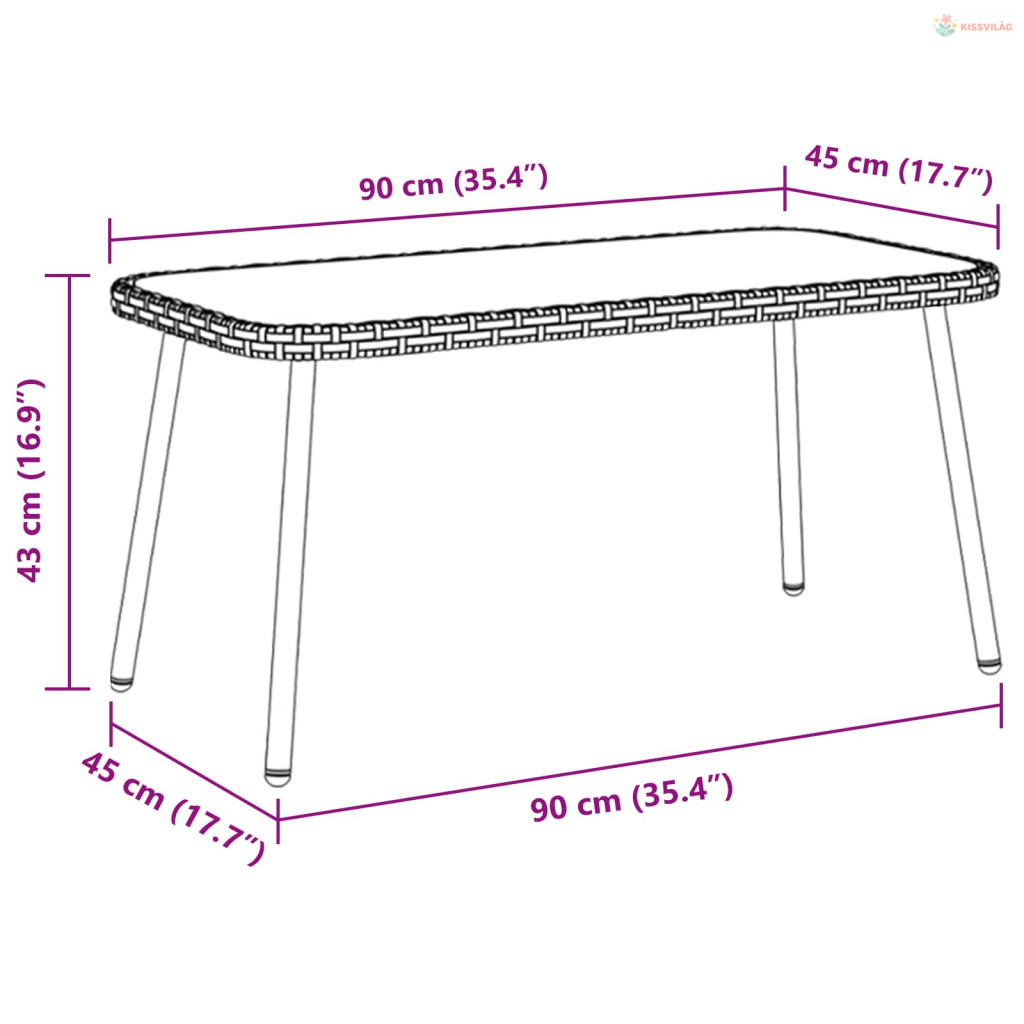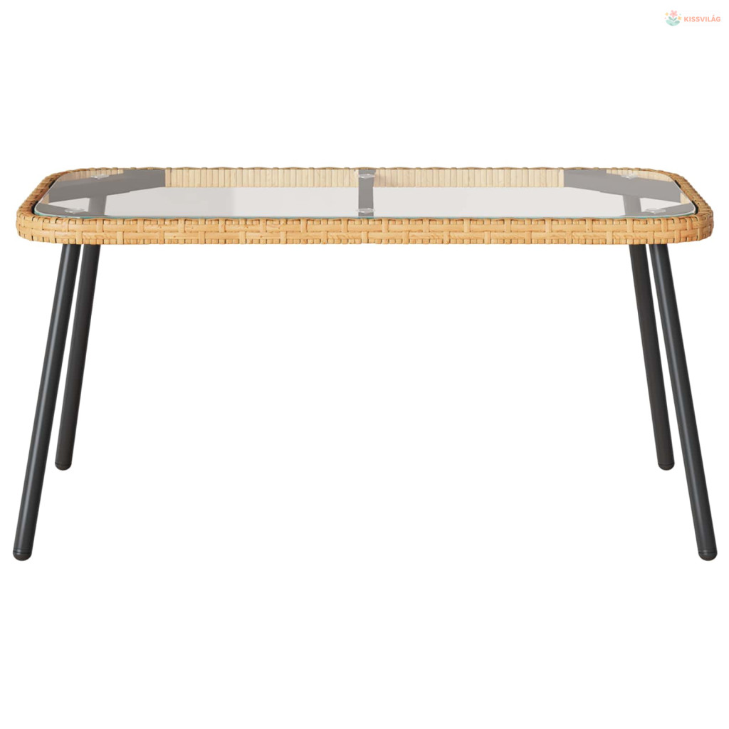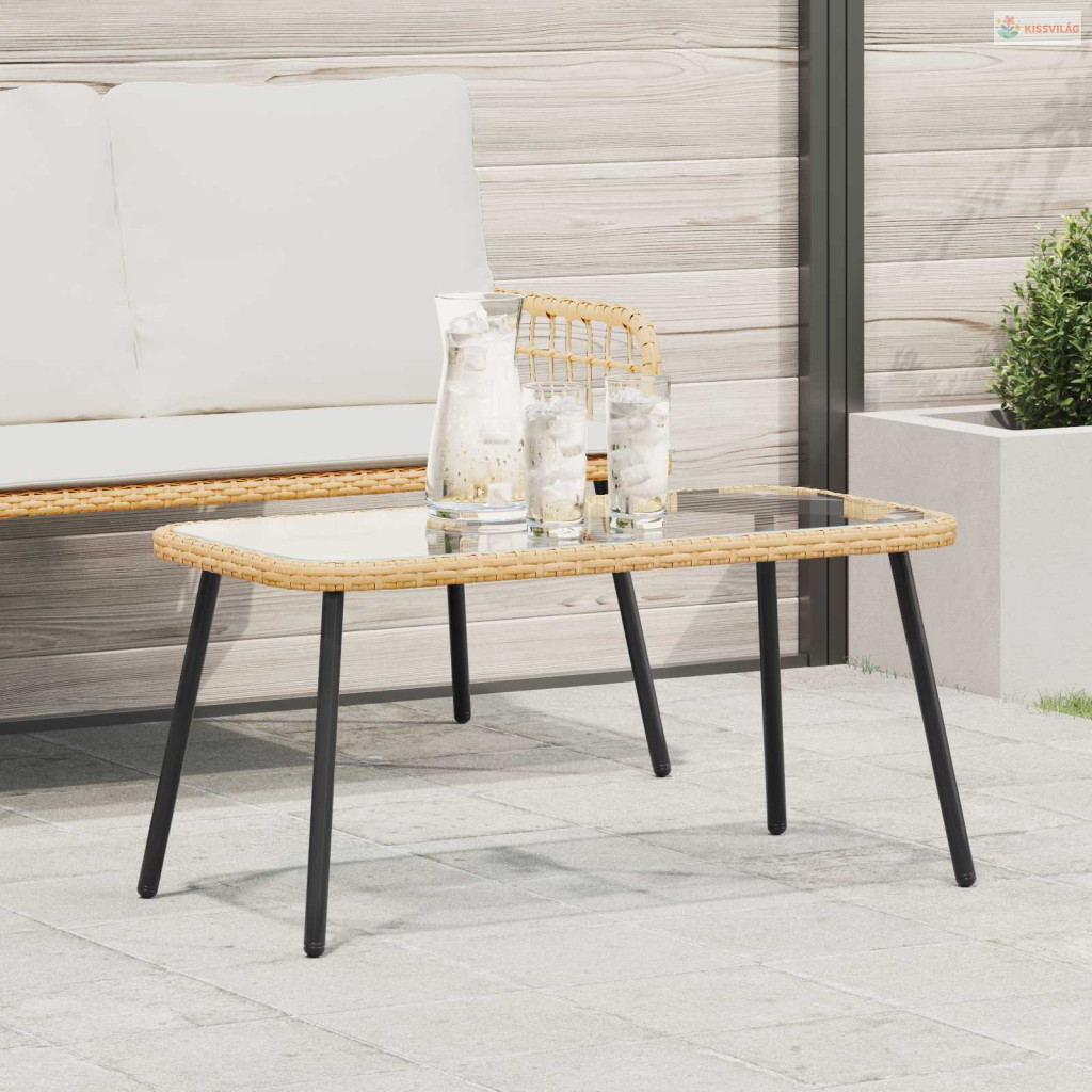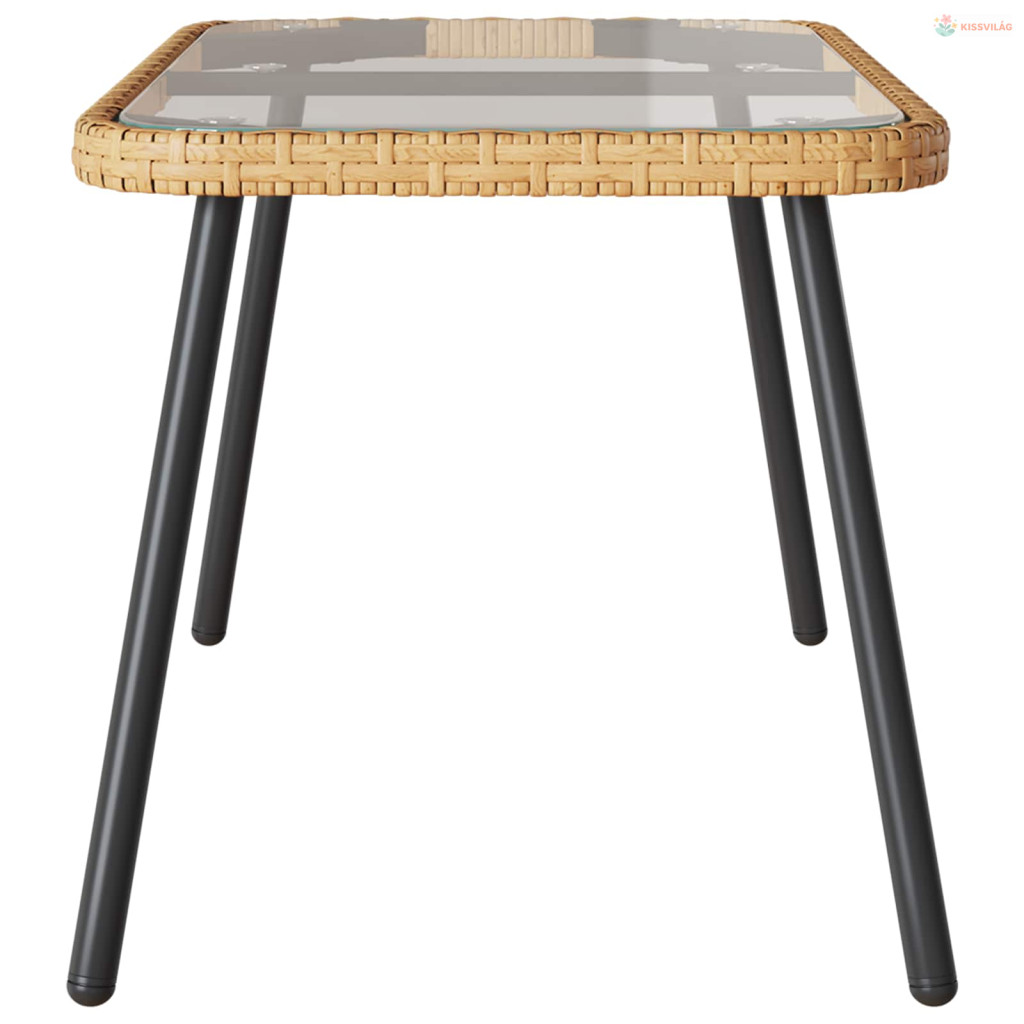• Tartozékok: A masszív rattan keret mellé jön az elegáns üveg topp is, ami tovább fokozza a dizájnt. Ezek együttes hatása biztosítja a szilárdságot és a kifinomult megjelenést, szóval hosszú távra megbízhatóan használható kültéren.