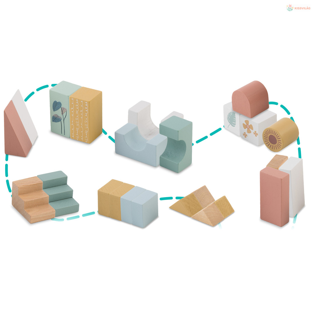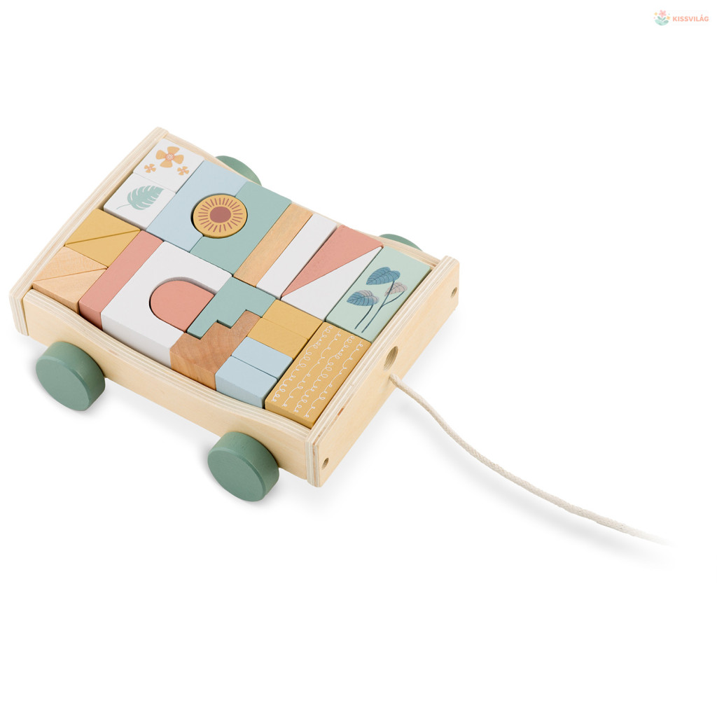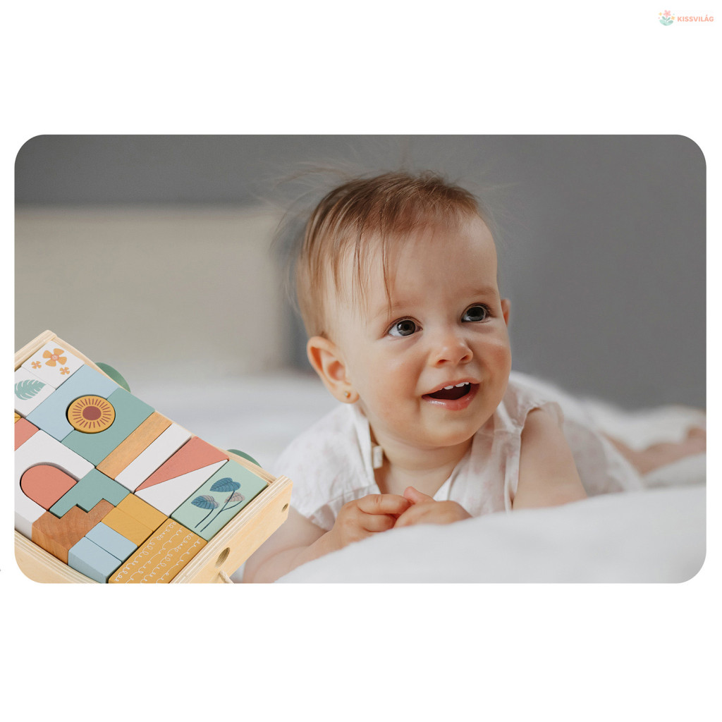 Ébreszd fel a kíváncsiságot a Nukido NK-853 húzható fakocsival és pasztell színű építőkockáival! A natúr fából készült, lekerekített sarkú platón biztonságosan sorakoznak a különböző formájú elemek, amelyeket a kicsi egy puha pamutzsinór segítségével bárhová magával húzhat. A gördülékeny kerekek és a letisztult dizájn játékra csábít, miközben a blokkpakolás és a húzás közben fejlődik a szem-kéz koordináció és az egyensúly. Miért jó a Nukido NK-853 húzható fakocka szett? Montessori-ihlette kialakítása aktív, tapasztalati tanulásra ösztönzi a kicsiket: építés közben felismerik a formákat és színeket, húzás közben pedig lépést és irányt gyakorolnak. A strapabíró tömörfa tartóssá teszi, a csendes, gumírozott kerekek parkettán és szőnyegen is finoman gurulnak. Mivel nem igényel elemet vagy hanghatást, a gyermek a saját fantáziájára hagyatkozva fedezheti fel a játék végtelen lehetőségeit. Ezért fogod szeretni: • Tartós, természetes fa – hosszú éveken át megbízható játszótárs • Pasztell, letisztult dizájn – bármely gyerekszobában harmonikusan mutat • Mozgásra ösztönző kiskocsi – fejleszti a járást és a koordinációt • Sokféle forma és minta – kreativitásra, építésre, szín- és alakfelismerésre inspirál • Elemmentes működés – csendes, környezetbarát, bárhol használható Használati útmutató: • Helyezd a kockákat a platóra, hogy stabilan feküdjenek • Fogd meg a pamutzsinór végét, majd kezdd el óvatosan húzni a kiskocsit • Építs tornyokat, hidakat vagy bármilyen fantázia-építményt a kockákból • Játék után rakd vissza az elemeket a platóra, így mindig rend marad • Tartsd távol nedvességtől és éles tárgyaktól A csomag tartalma: • 1 db húzható fakocsi zsinórral • Színes, különböző formájú fadarabok készlete