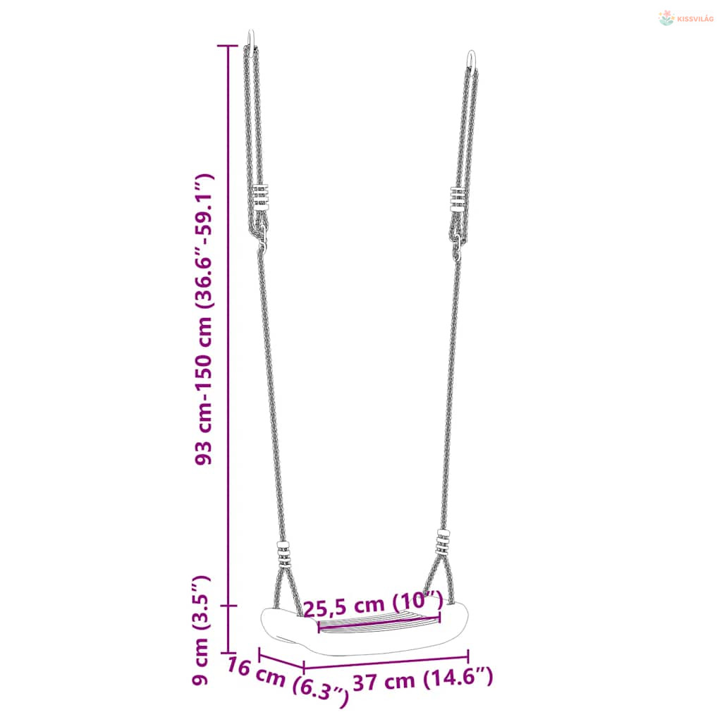 • Biztonságos és stabil telepítés: Ez a kültéri hinta masszív fém rögzítőgyűrűkkel rendelkezik a kötélen, amelyek biztosítják a biztonságos rögzítést bármilyen hintakerethez vagy más megfelelő szerelvényhez.