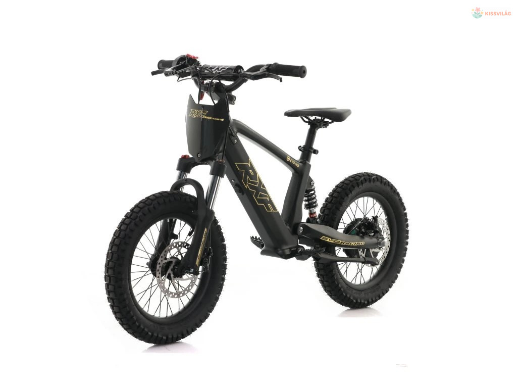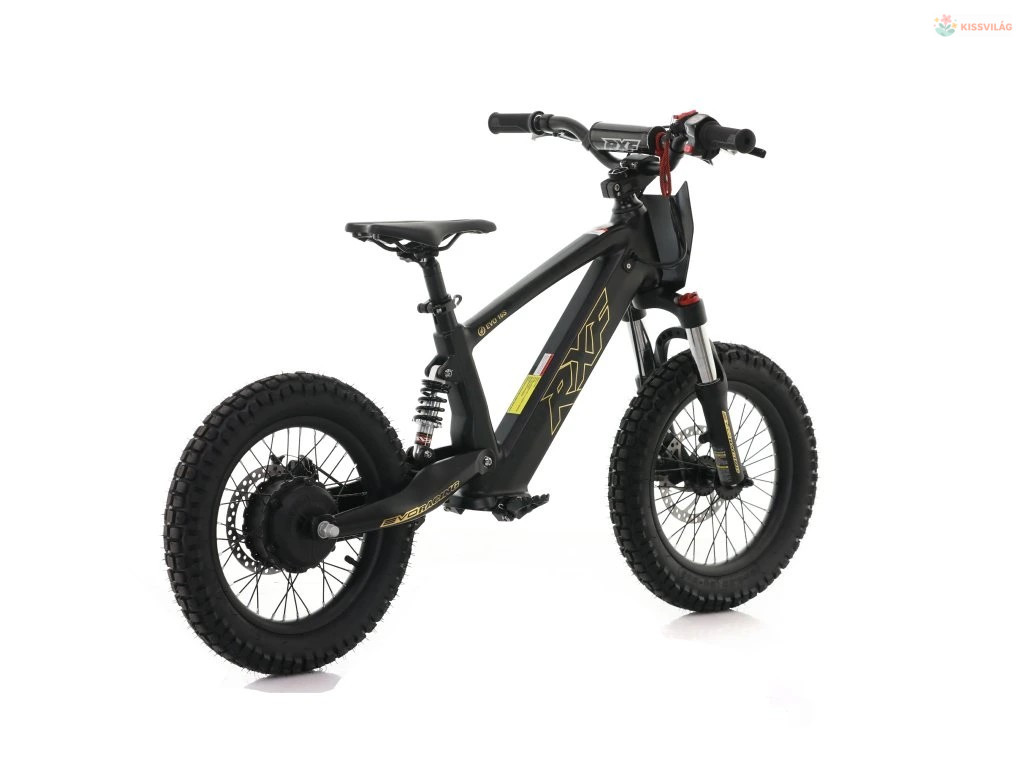 Gyermek elektromos motorkerékpár, teljesítmény 350 W, sebesség akár 25 km/h, 3 üzemmód, 24 V 5 Ah akkumulátor, hidraulikus fékek. Ajánlott testmagasság 90–120 cm, maximális terhelhetőség 70 kg.