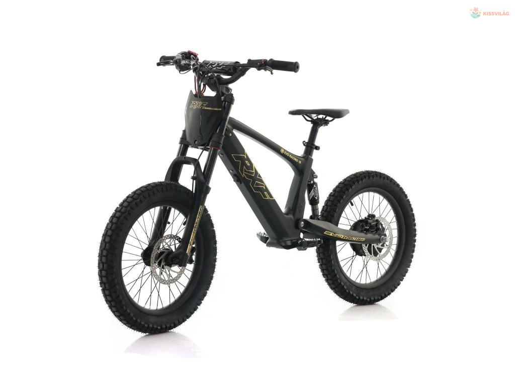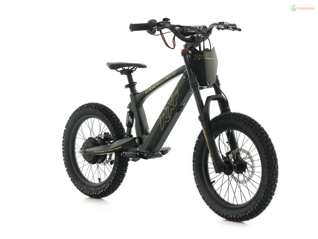 Gyermek elektromos motorkerékpár, teljesítmény 500 W, sebesség akár 30 km/h, 3 üzemmód, 36 V 7,5 Ah akkumulátor, hidraulikus fékek. Ajánlott testmagasság 120–150 cm, maximális terhelhetőség 70 kg.