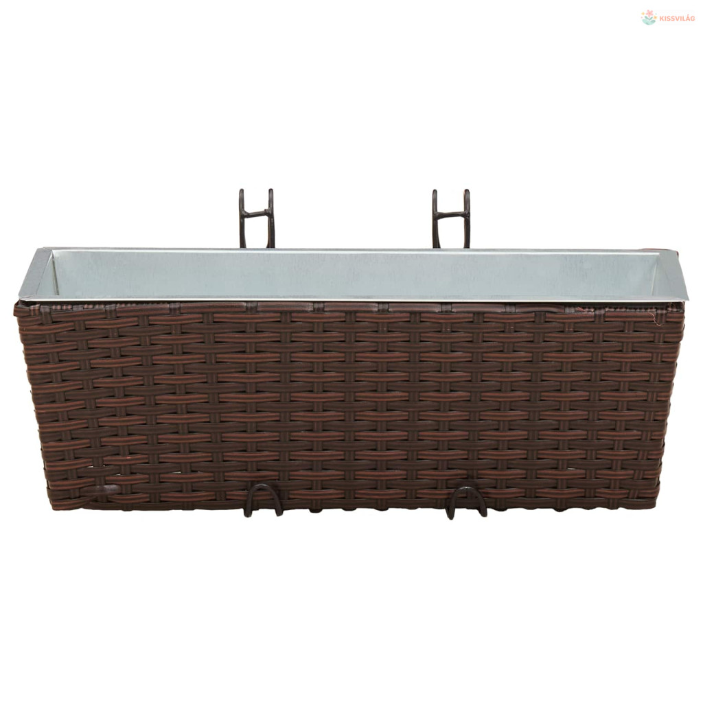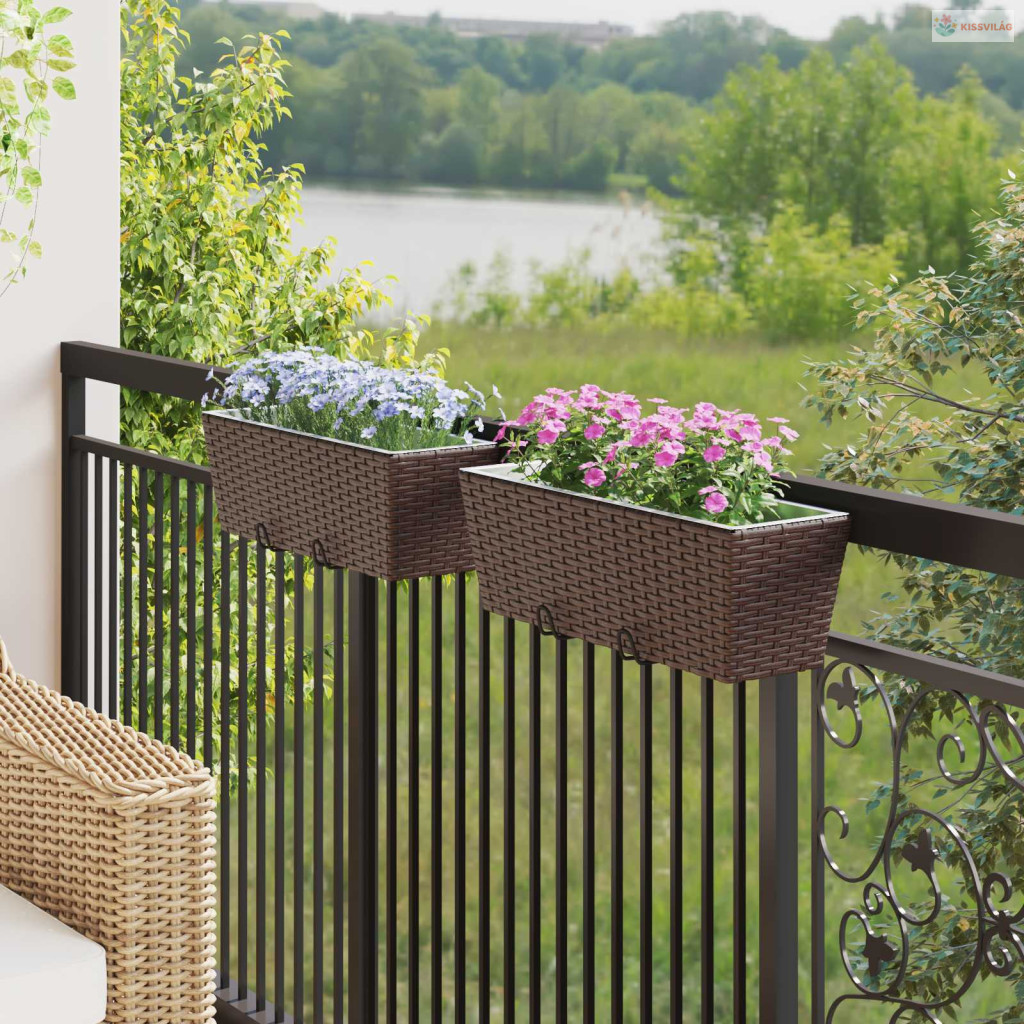 Ez a Balkonkorlát ültető kültéri használatra készült, modern minimalizmust ötvözve a funkcionális, rattanra hasonlító megjelenéssel. Trapéz alakja és a rattan mintázat elegáns, amely tökéletesen feldobja a teraszt vagy erkélyt!