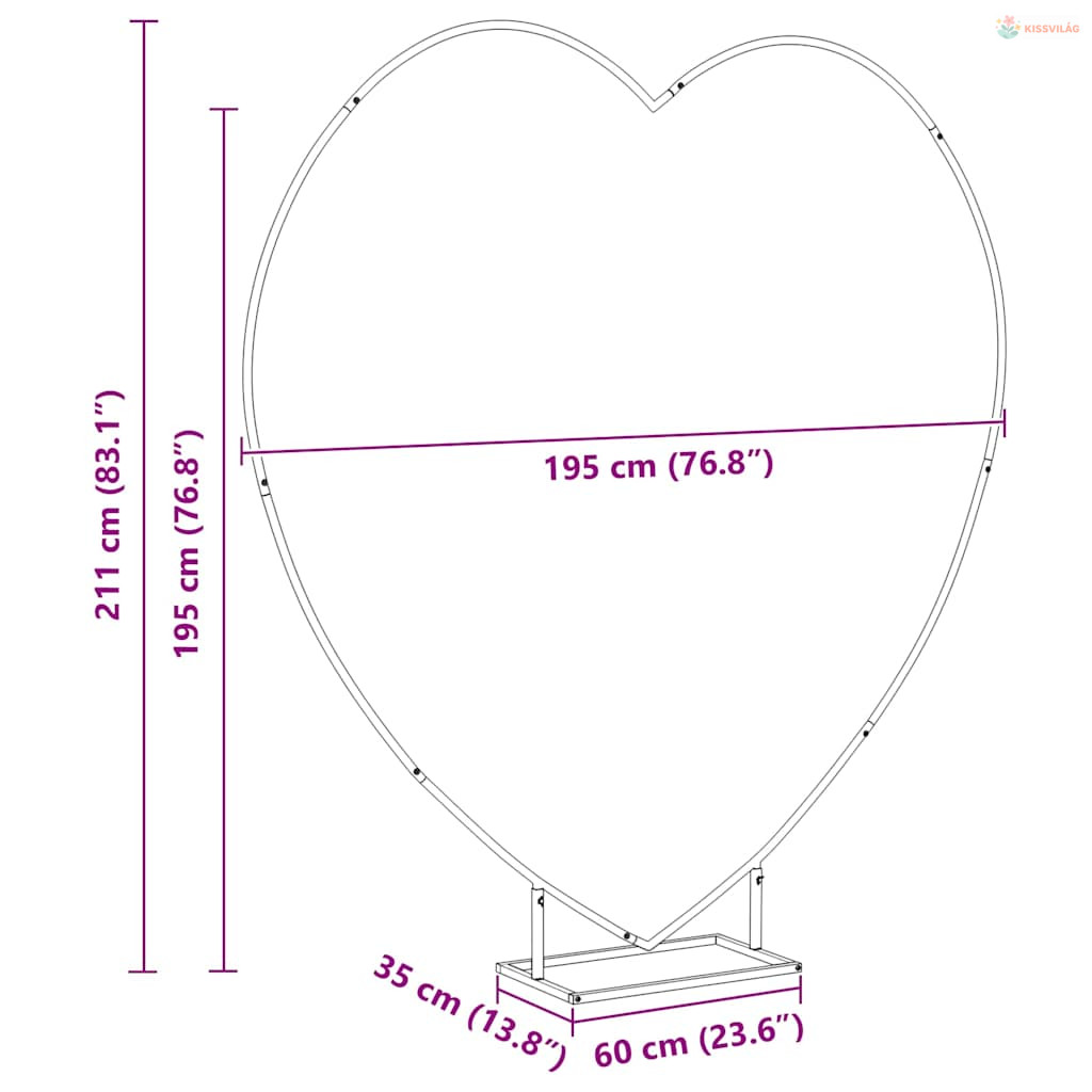 Emeld a szabadtéri esküvőket a Morden Esküvői Ívvel! Ez egy elegáns szív alakú szerkezet, ami modern és kifinomult. Az egyszerűség és funkció ötvözésével bármilyen kertből varázsol idilli helyszínt. A letisztult vonalak időtlen kinézetet adnak, így tökéletes fókuszt teremt a nagy napodon vagy bármilyen kültéri eseményen.