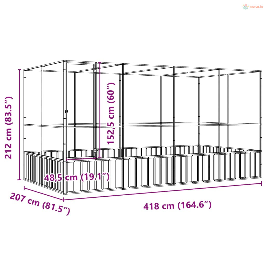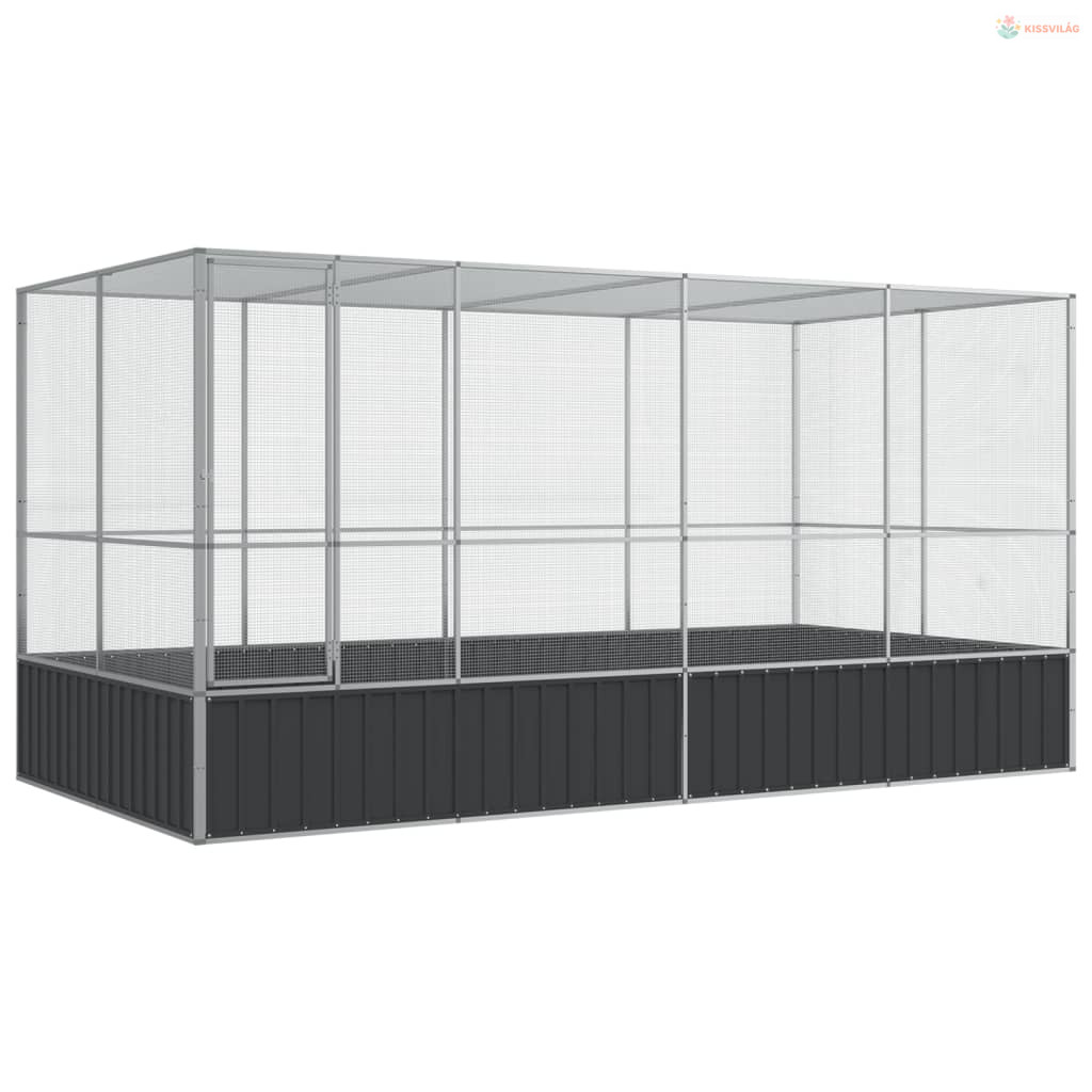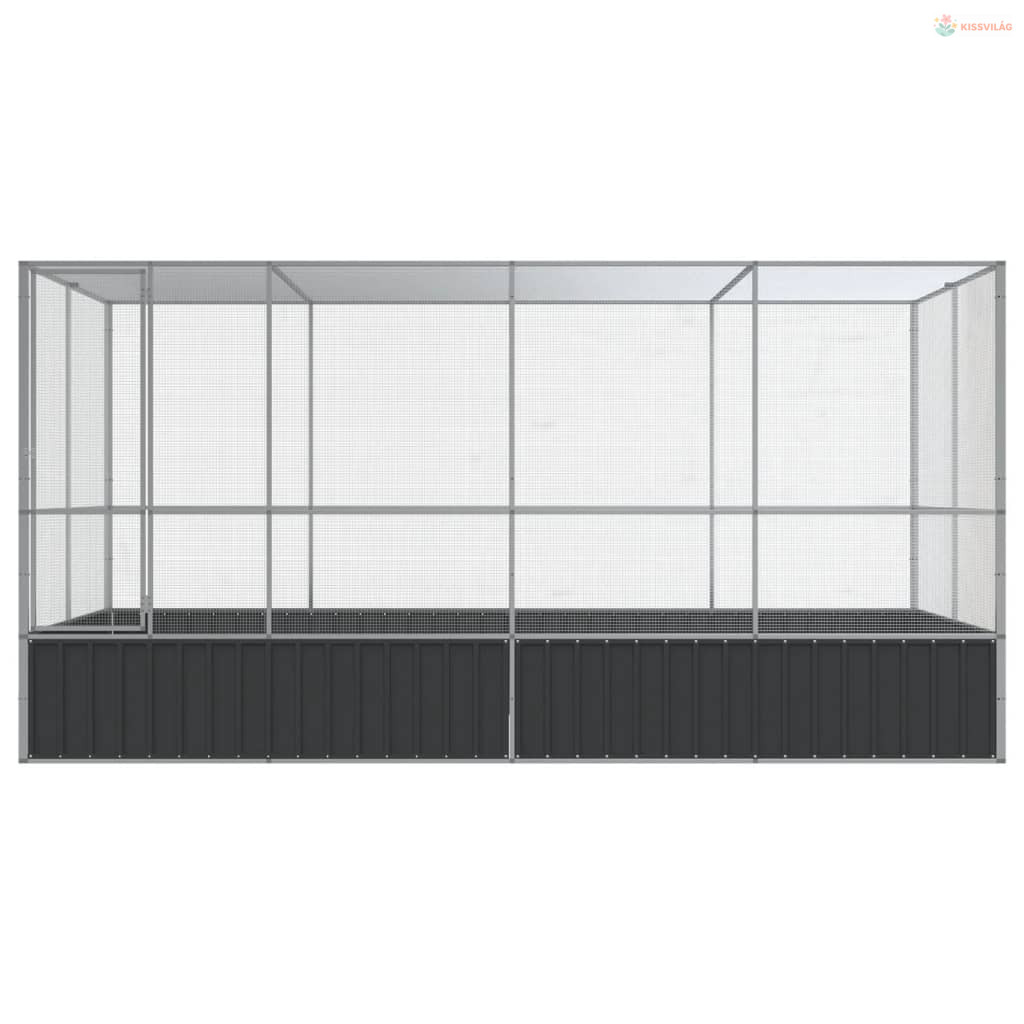 Ezüst színű acél madárház kiterjesztésekkel 418 x 207 x 212 cm