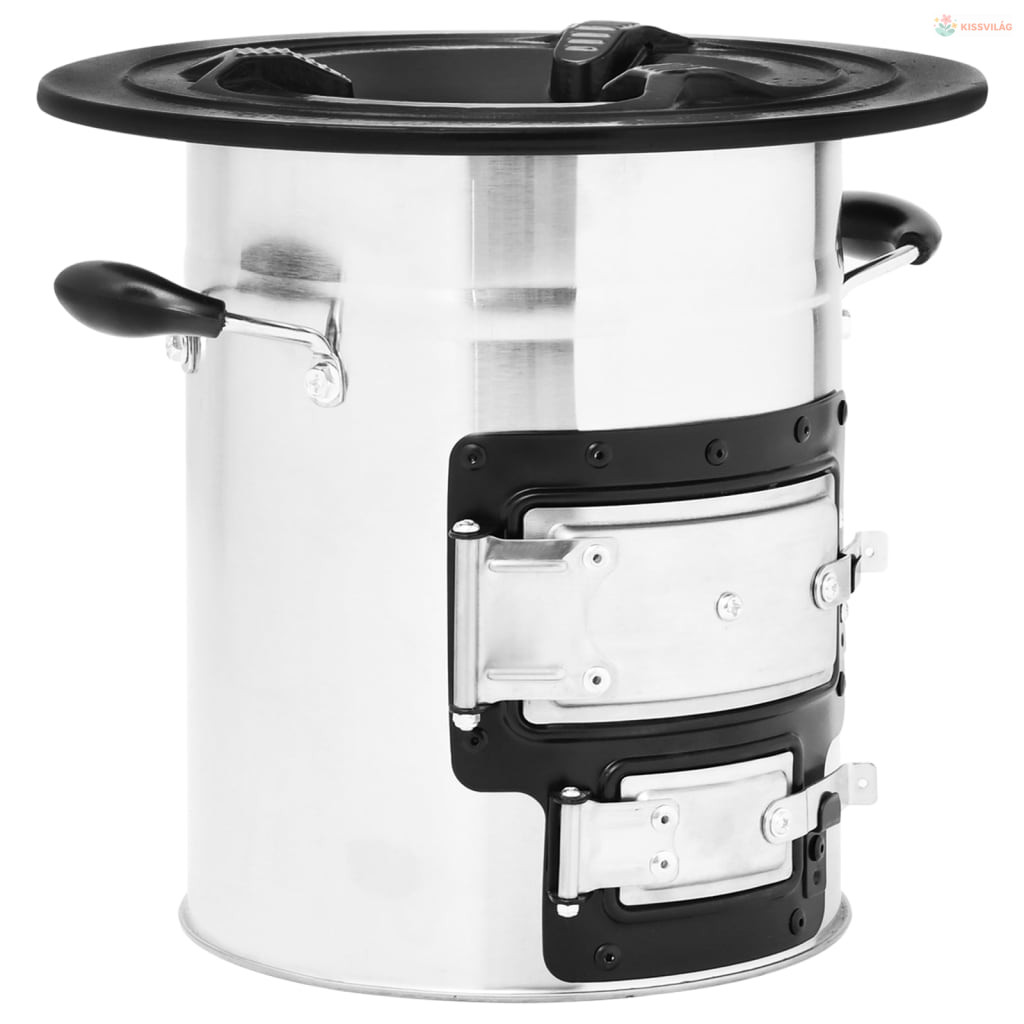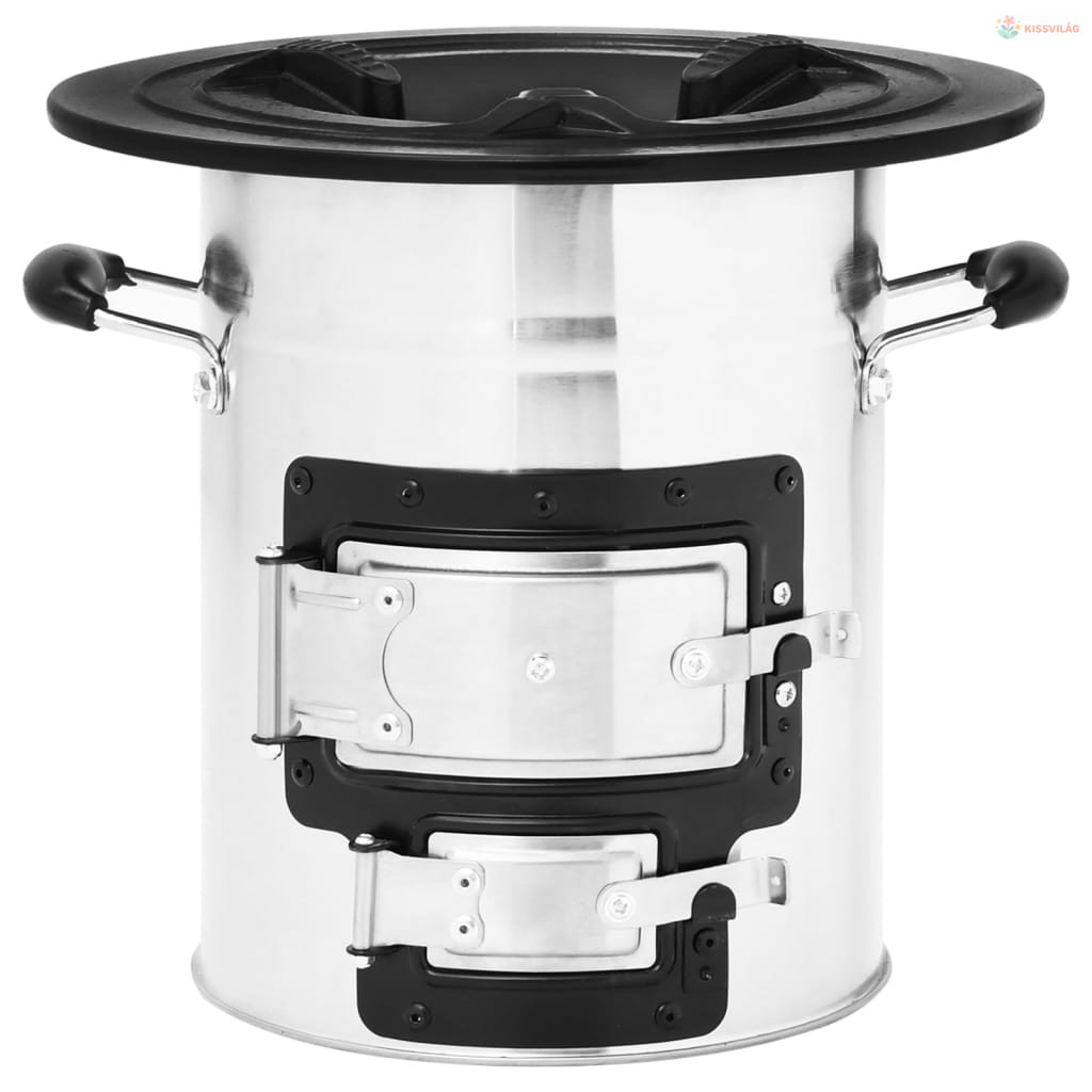 Ezüstszínű acél fatüzelésű kempingtűzhely 51,5 x 35 x 30,5 cm