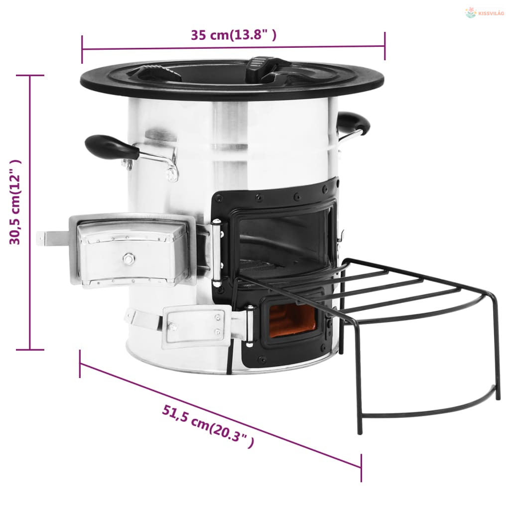 Ez a fatüzelésű kempingtűzhely főzőeszközként szolgál kültéri tevékenységekhez, hidegebb időben pedig extra meleget és kellemes hangulatot teremt.