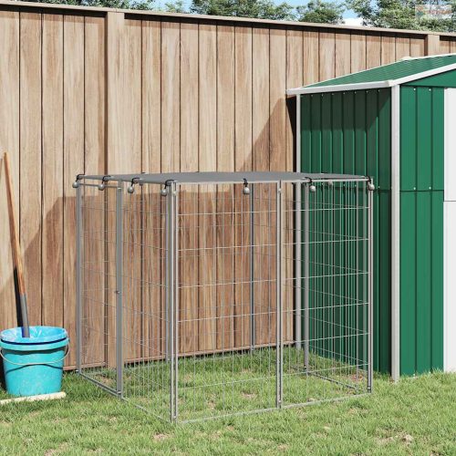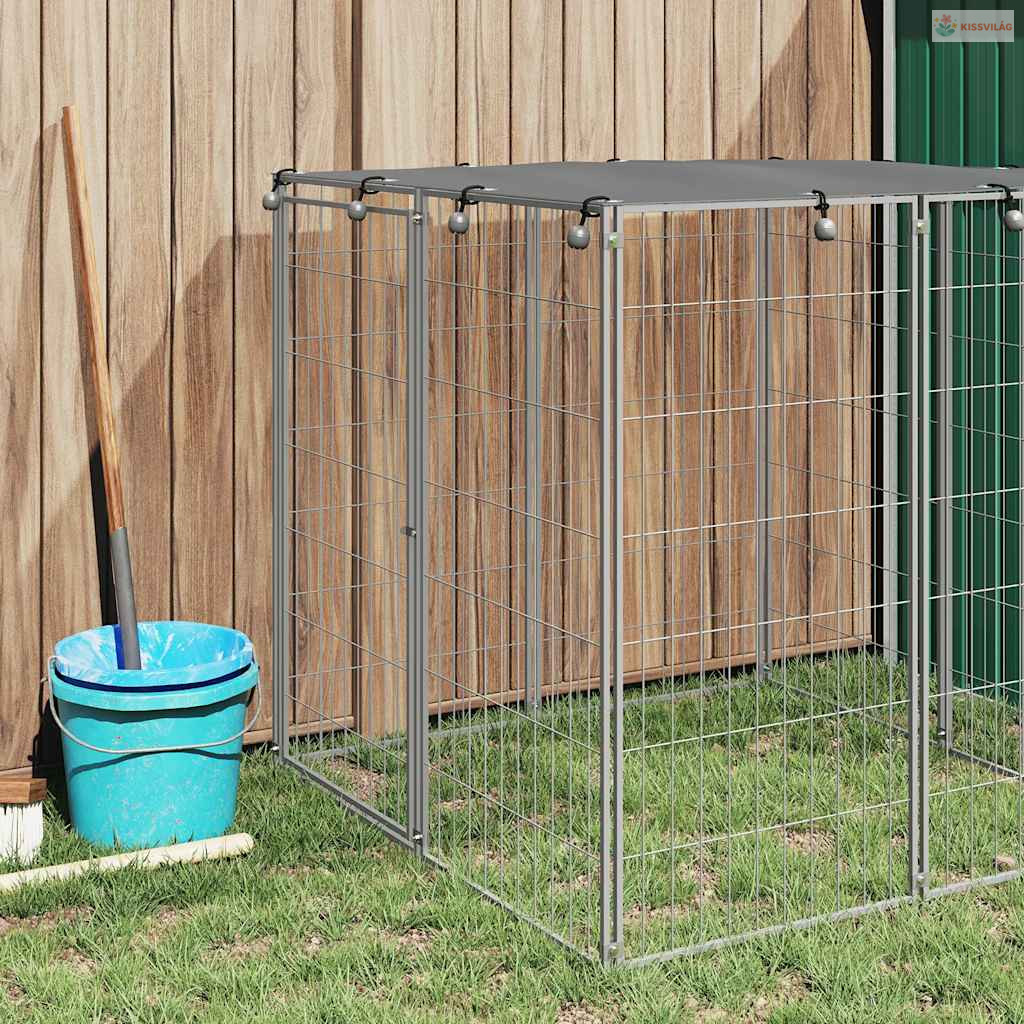 Ezüstszínű acél kutyakennel 110 x 110 x 110 cm
