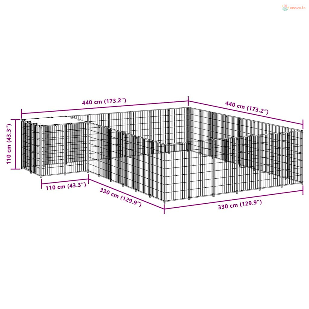 Ezüstszínű acél kutyakennel 15,73 m²