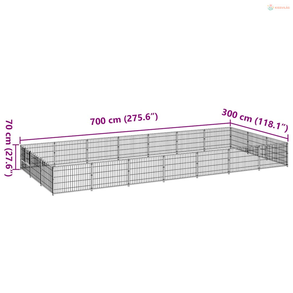 Ezüstszínű acél kutyakennel 21 m²