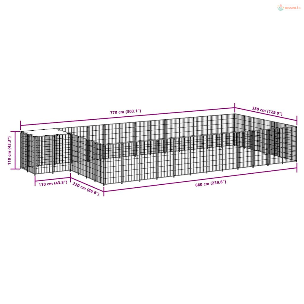Ezüstszínű acél kutyakennel 22,99 m²