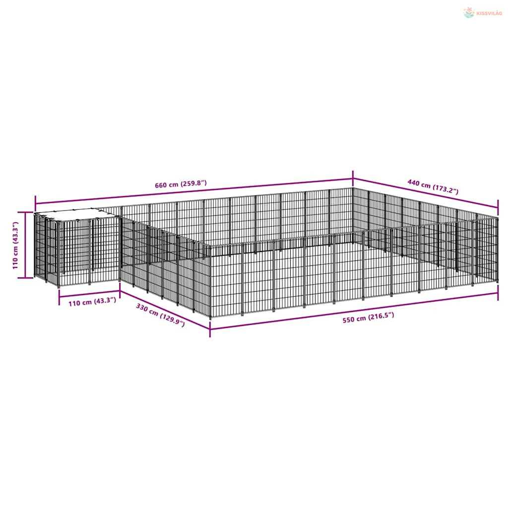 Ezüstszínű acél kutyakennel 25,41 m²